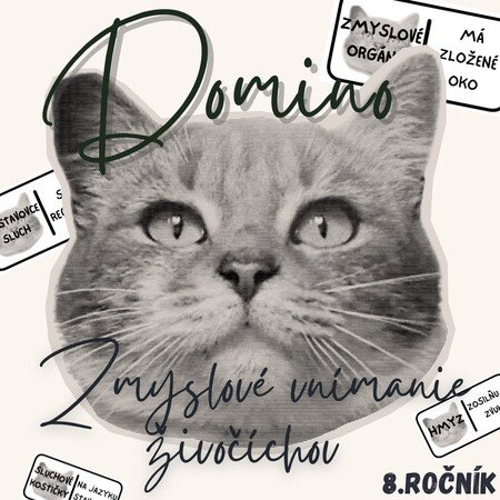 Materiál „Domino – Zmyslové vnímanie živočíchov“ je didaktická a názorná edukačná aktivita určená pre žiakov 8. ročníka základnej školy na hodiny biológie. Prostredníctvom práce s domino kartičkami si žiaci upevňujú poznatky o zmyslovom vnímaní živočíchov, jednotlivých zmysloch, ich funkciách a význame pre správanie a prežitie organizmov.