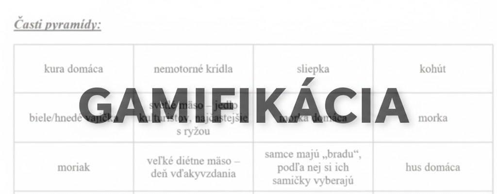 Ponúkam didaktickú hru "pyramída" s postupom, popisom a riešením na tému chovateľsky významné vtáky pre 6. ročník ZŠ. Vhodná na priebeh celej vyučovacej jednotky. Podporuje kreativitu, predstavivosť a pri správnej organizácií pedagógom aj kolektívnu činnosť, prípadne kompetitívnosť.