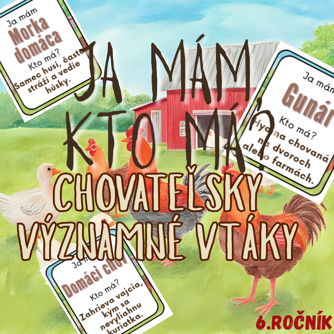 Materiál Ja mám, kto má? – Chovateľsky významné vtáky je interaktívna a zábavná aktivita, ktorá pomáha žiakom 6. ročníka základnej školy zopakovať a upevniť poznatky o domácich a hospodárskych vtákoch, ich význame, rozmnožovaní a produktoch, ktoré poskytujú.