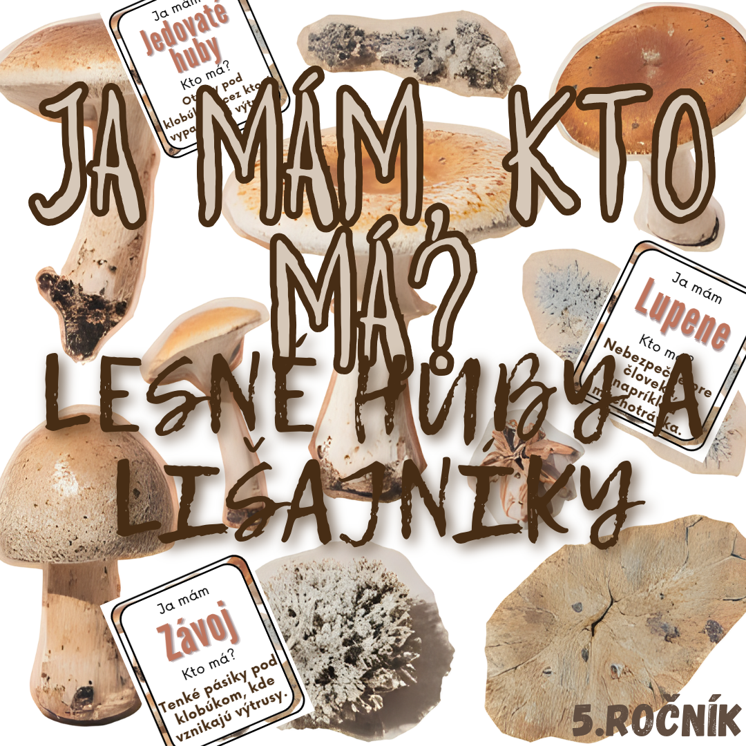 Materiál Ja mám, kto má? – Lesné huby a lišajníky je hravá a interaktívna aktivita, ktorá pomáha žiakom 5. ročníka základnej školy zopakovať a upevniť učivo o rozmanitosti húb a lišajníkov, ich význame a výskyte v lese.