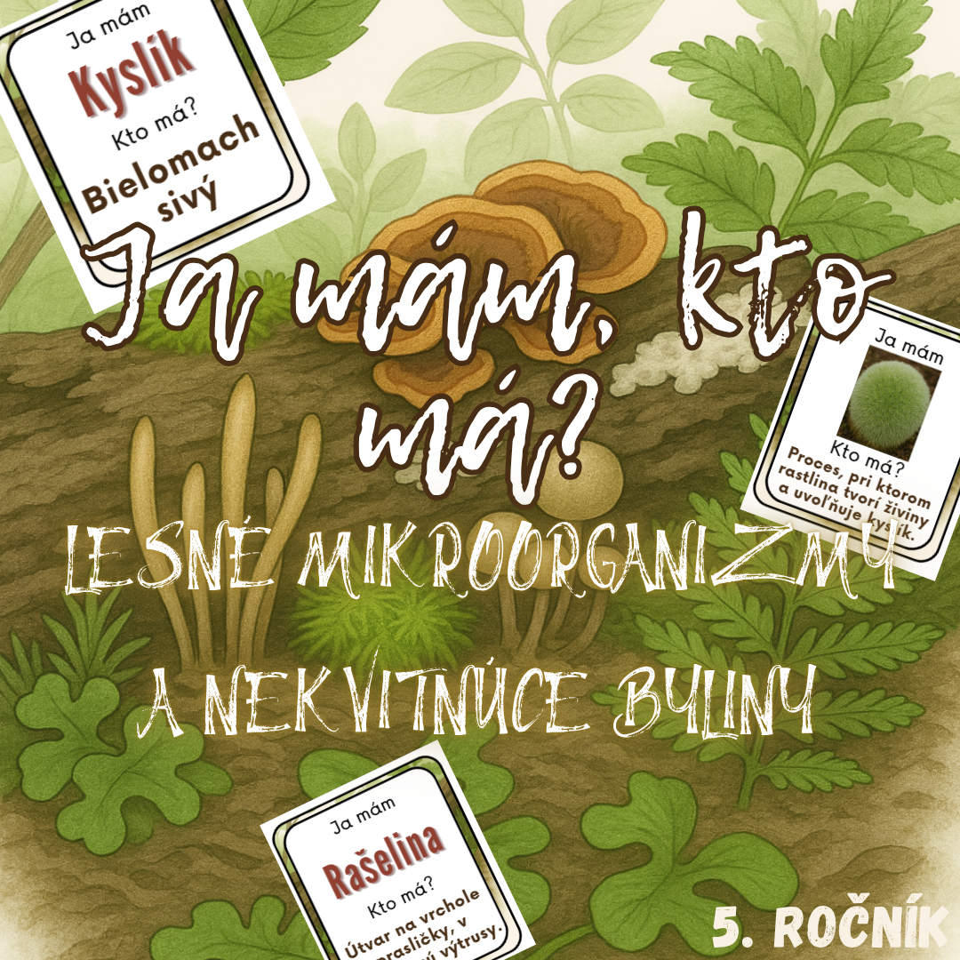 Materiál Ja mám, kto má? – Lesné mikroorganizmy a nekvitnúce byliny je interaktívna a hravá aktivita, ktorá pomáha žiakom 5. ročníka základnej školy zopakovať poznatky o úlohe lesných mikroorganizmov a zároveň precvičiť rozpoznávanie vybraných nekvitnúcich bylín.