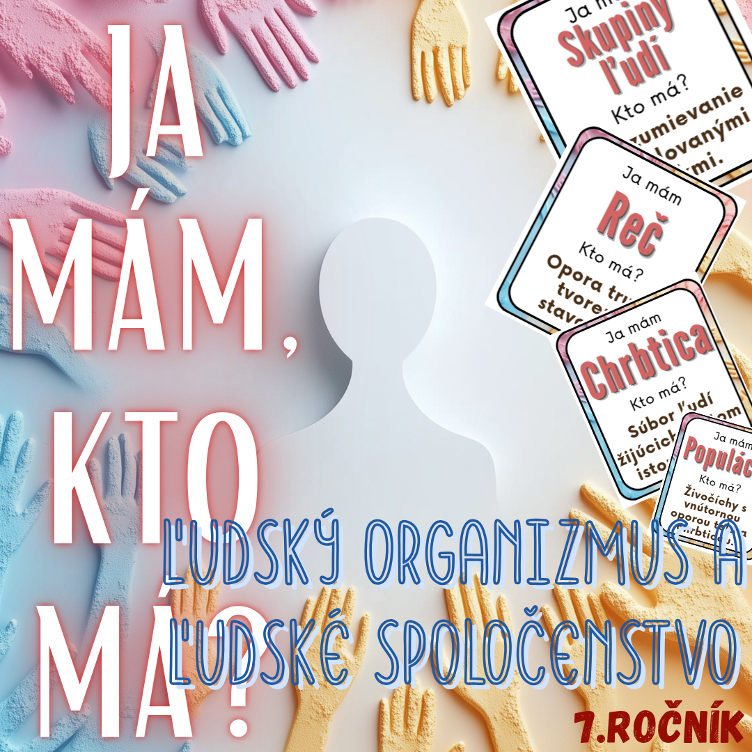 Materiál Ja mám, kto má? – Ľudský organizmus a ľudské spoločenstvo je interaktívna kartová hra, ktorá pomáha žiakom 7. ročníka upevniť učivo o stavbe, funkciách a spolupráci orgánov ľudského tela, ako aj pochopiť základné princípy fungovania ľudského spoločenstva.