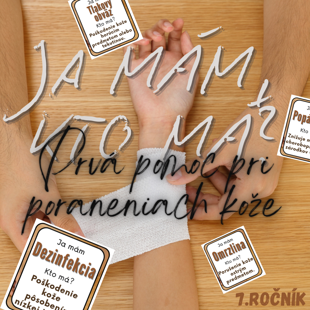 Materiál „Ja mám, kto má? – Prvá pomoc pri poraneniach kože“ je interaktívna kartová hra určená primárne pre žiakov 7. ročníka základnej školy, ale taktiež využiteľná aj v iných ročníkoch napríklad aj na teoretickej časti účelového cvičenia. Hravou a dynamickou formou pomáha zopakovať, upevniť a prakticky uplatniť poznatky o prvej pomoci pri poraneniach kože a o správnych postupoch pri drobných úrazoch.