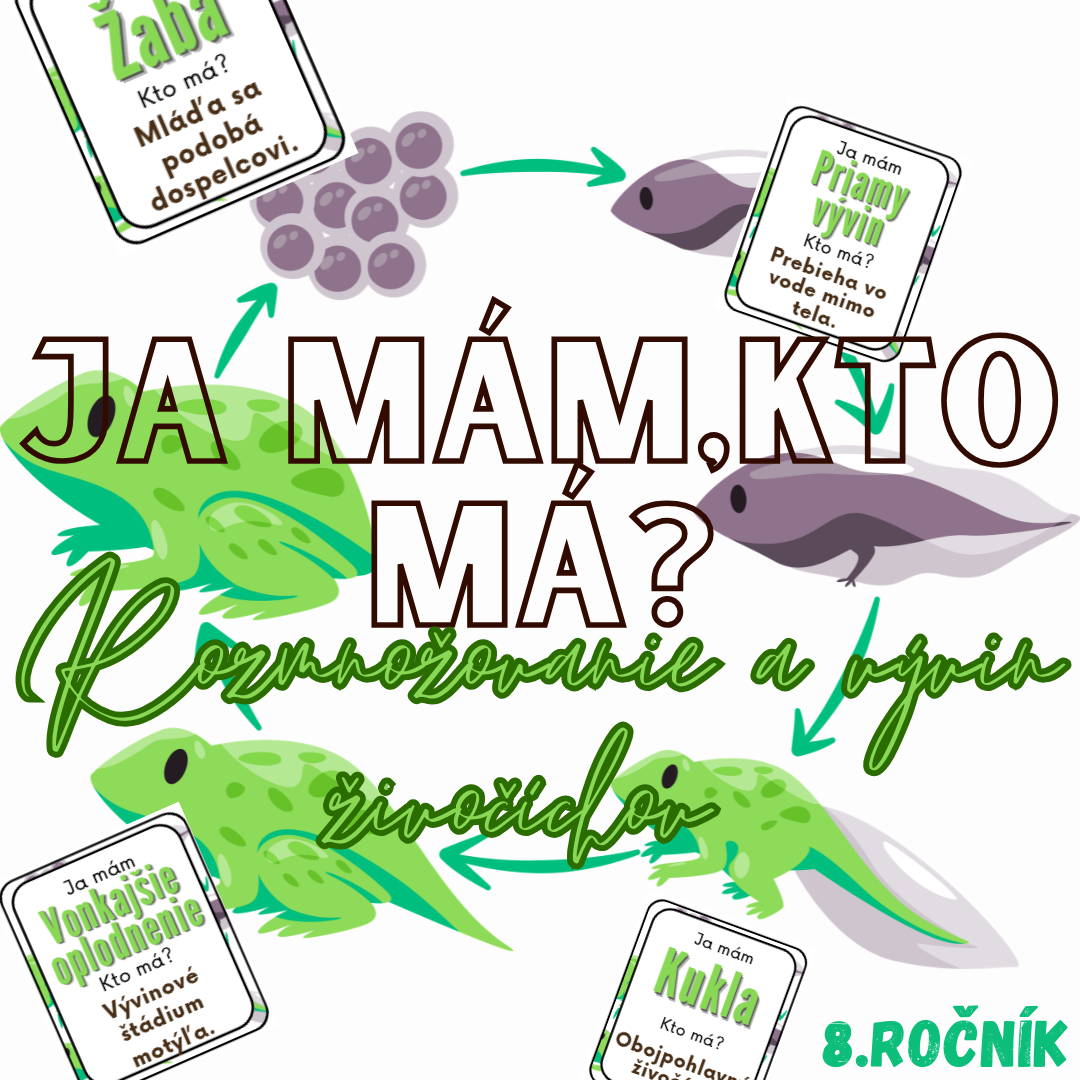 Materiál „Ja mám, kto má? – Rozmnožovanie a vývin živočíchov“ je dynamická a interaktívna edukačná aktivita určená pre žiakov 8. ročníka základnej školy na hodiny biológie. Aktivita je spracovaná k téme rozmnožovanie a vývin živočíchov a pomáha žiakom upevniť poznatky o základných procesoch zabezpečujúcich pokračovanie druhu.
