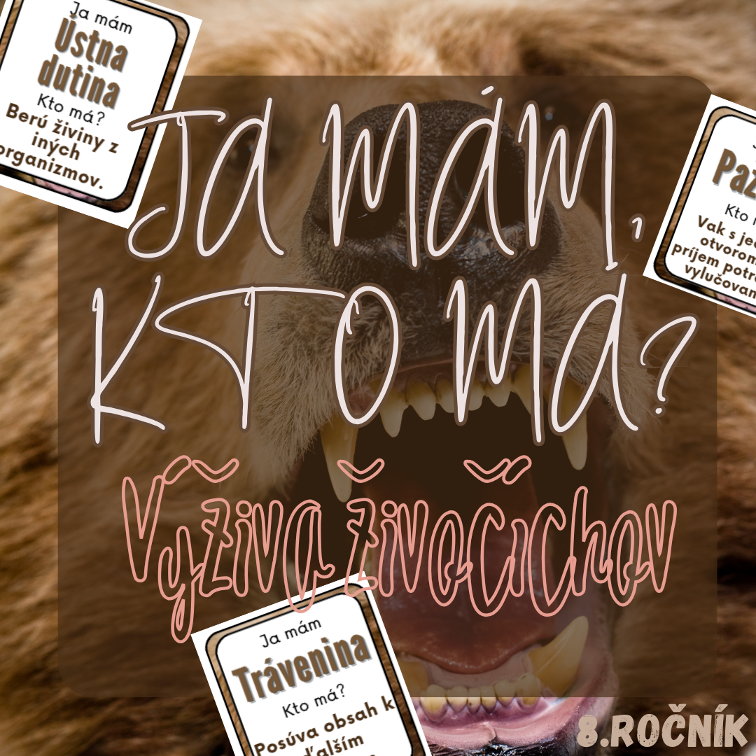 Materiál Ja mám, kto má? – Výživa živočíchov je interaktívna a hravá aktivita, ktorá pomáha žiakom zopakovať a upevniť poznatky o výžive a trávení živočíchov.