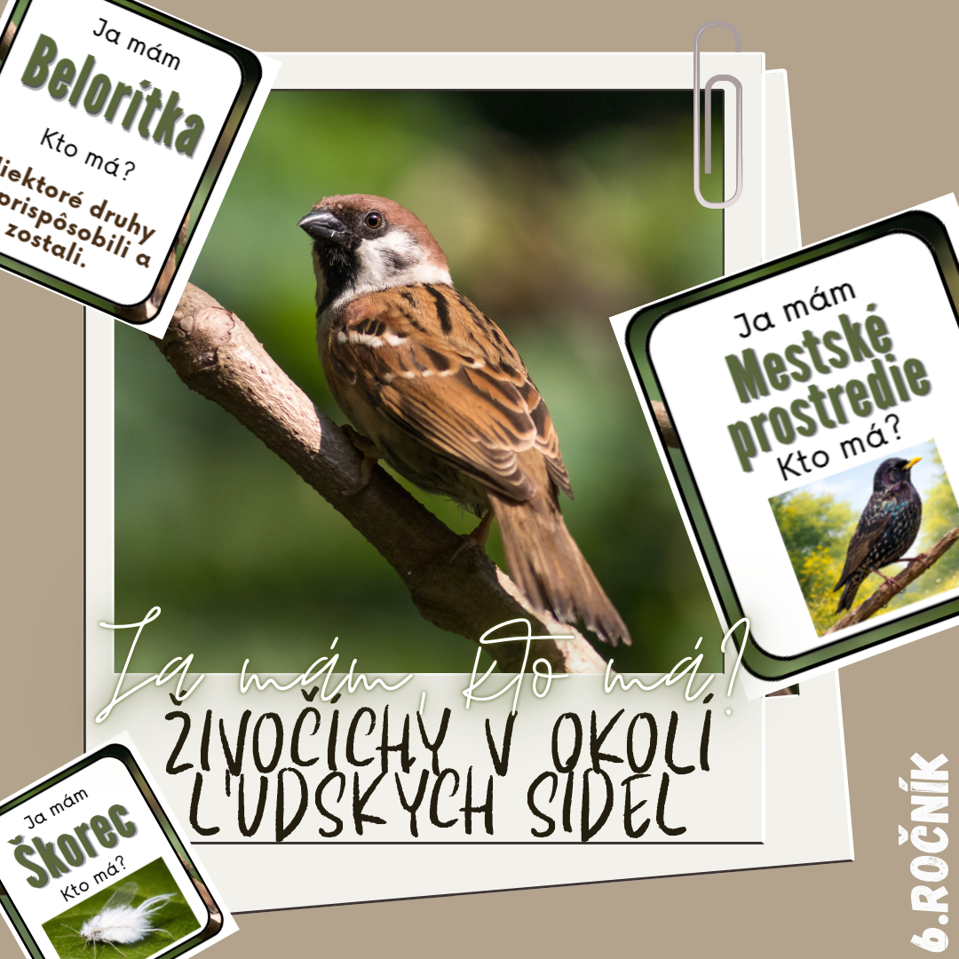 Materiál „Ja mám, kto má? – Živočíchy v okolí ľudských sídel“ je interaktívna kolová hra určená pre žiakov 6. ročníka, ktorá hravou formou prepája poznatky o živočíchoch žijúcich v mestách, obciach a v ich blízkom okolí.