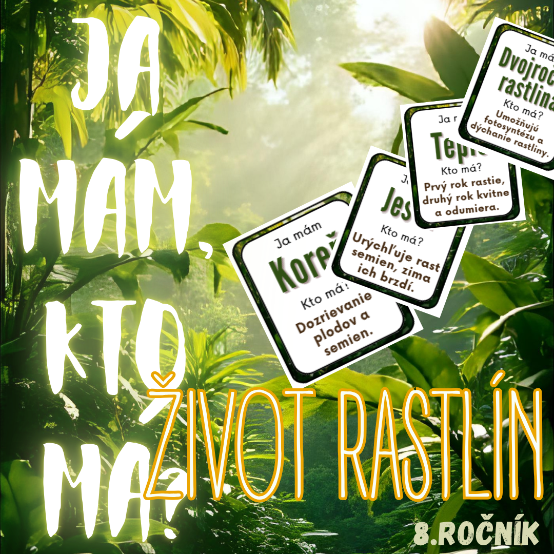 Materiál Ja mám, kto má? – Život rastlín je interaktívna a hravá aktivita, ktorá pomáha žiakom 8. ročníka základnej školy zopakovať a upevniť poznatky o životných procesoch rastlín – o raste, výžive, dýchaní, rozmnožovaní a prispôsobení sa prostrediu.