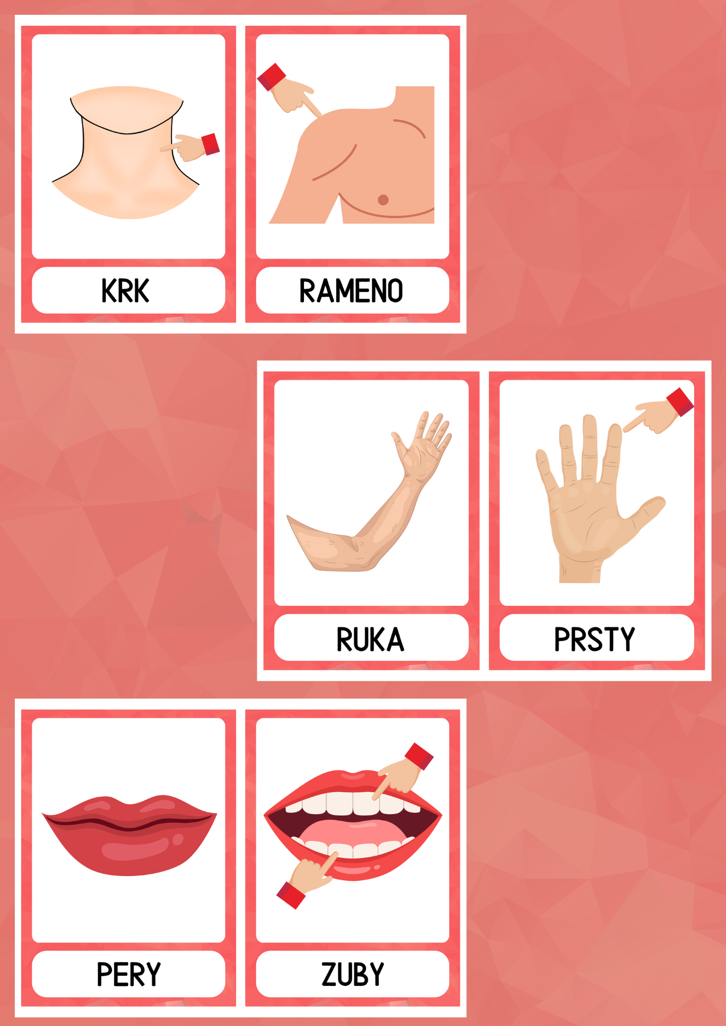 Súbor obsahuje 26 demonštračných obrázkov častí ľudského tela s pomenovaním.