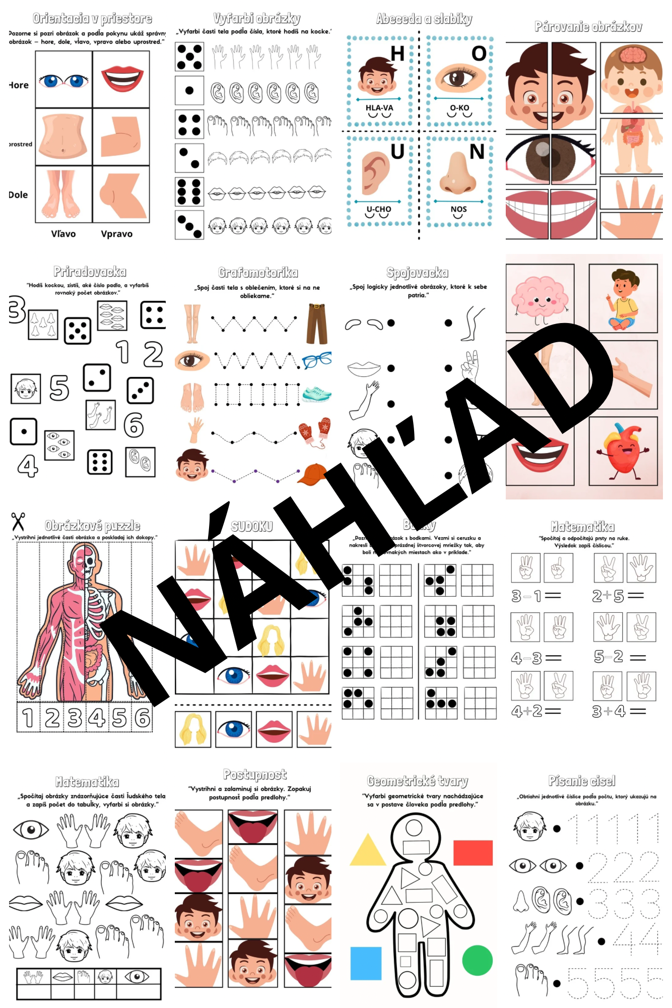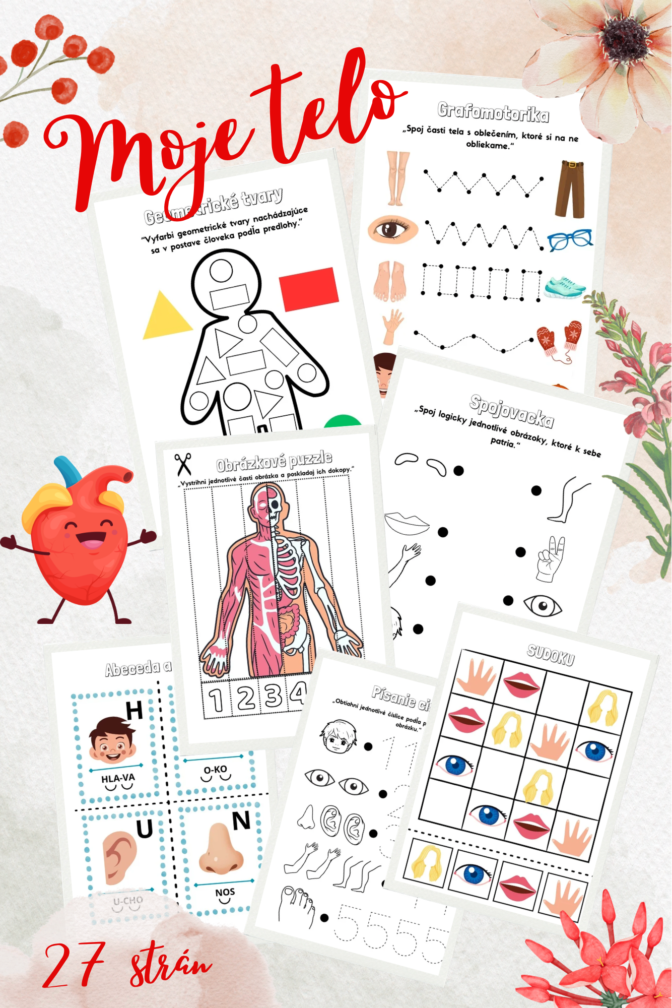 Materiál „Moje telo“ je súbor určený pre deti vo veku 3–6 rokov, ktoré hravou formou podporujú poznávanie ľudského tela, rozvíjajú grafomotorické, jazykové, matematické a pohybové zručnosti.