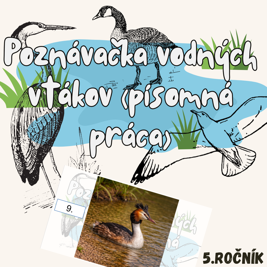 Materiál „Poznávačka vodných vtákov (písomná práca)” je hodnotiaca a precvičovacia aktivita určená pre žiakov 5. ročníka základnej školy na hodiny biológie. Slúži na overenie schopnosti určovať vodné vtáky podľa ich vonkajších znakov.