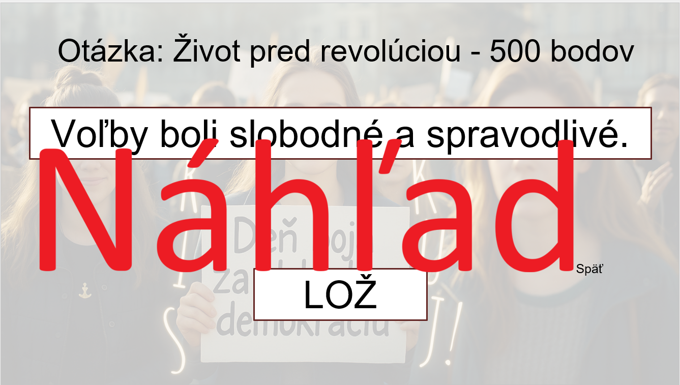 Hra spája históriu s občianskou výchovou a vedie žiakov k uvedomeniu si spoločenských zmien a významu občianskej angažovanosti.