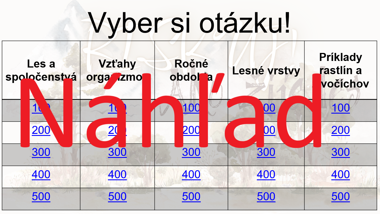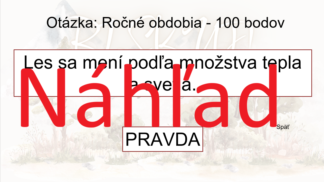 Aktivita je inšpirovaná televíznou súťažou Riskuj! – žiaci si vyberajú otázky z piatich tematických okruhov podľa obtiažnosti (100 – 500 bodov) a odpovedajú na výroky typu pravda / lož.