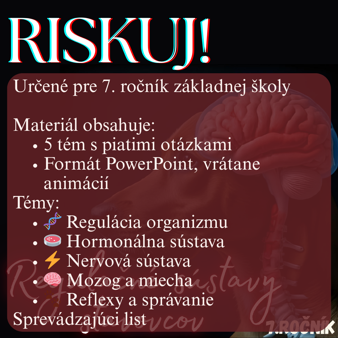 Materiál RISKUJ! – Regulačné sústavy stavovcov je interaktívna a hravá aktivita určená pre žiakov 7. ročníka základnej školy.