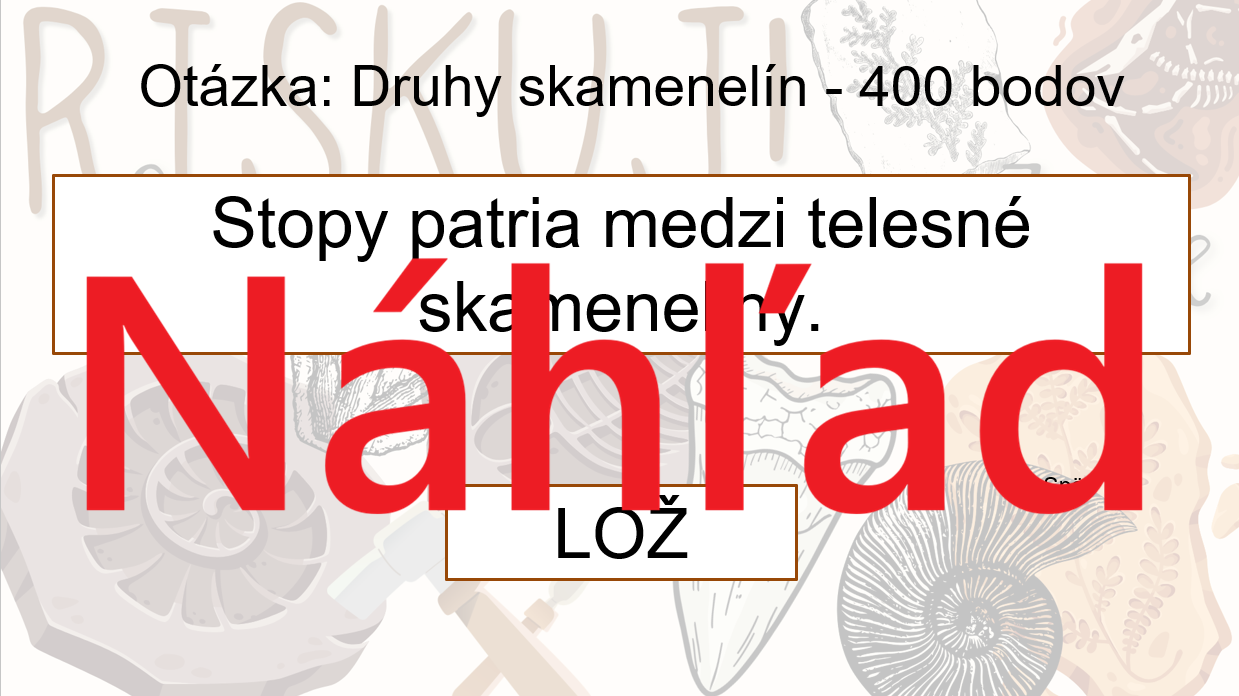 🔹 interaktívna prezentácia vo formáte PPSX s otázkami rozdelenými podľa bodovej hodnoty (100 – 500 bodov),