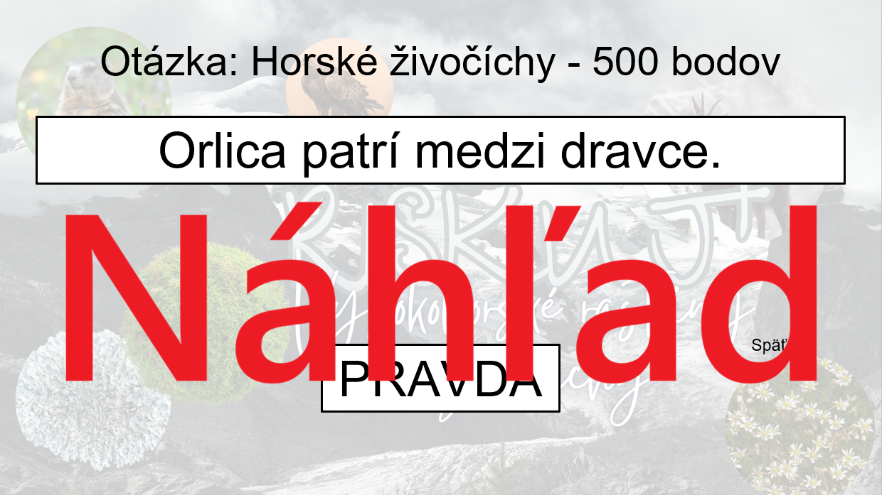 🔹 5 tematických okruhov s otázkami typu pravda/lož (100 – 500 bodov),