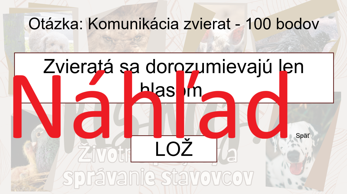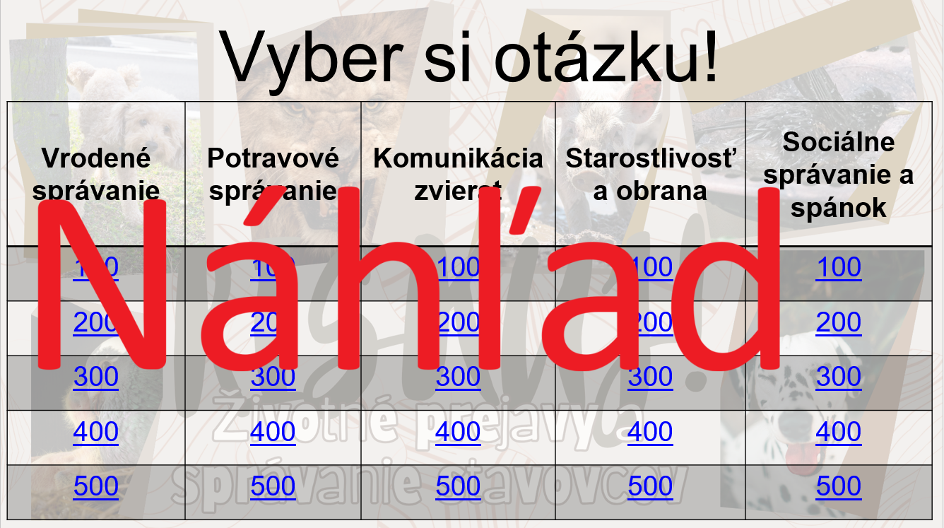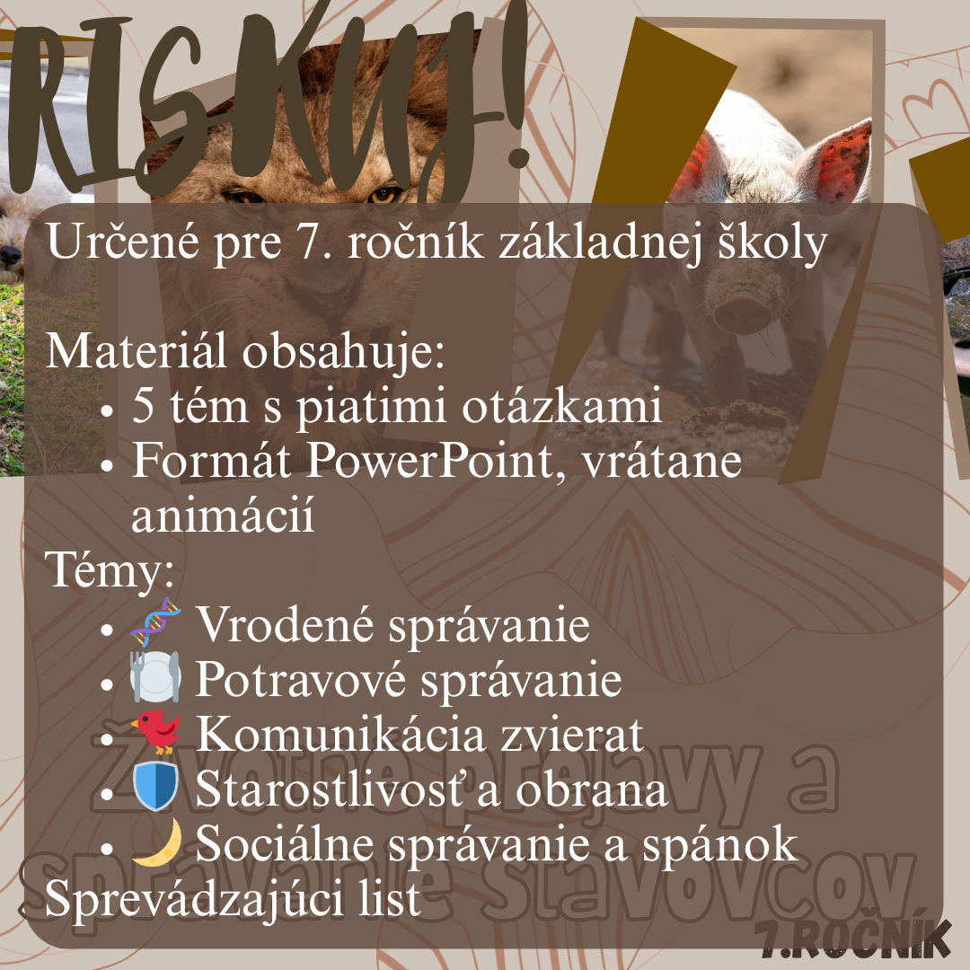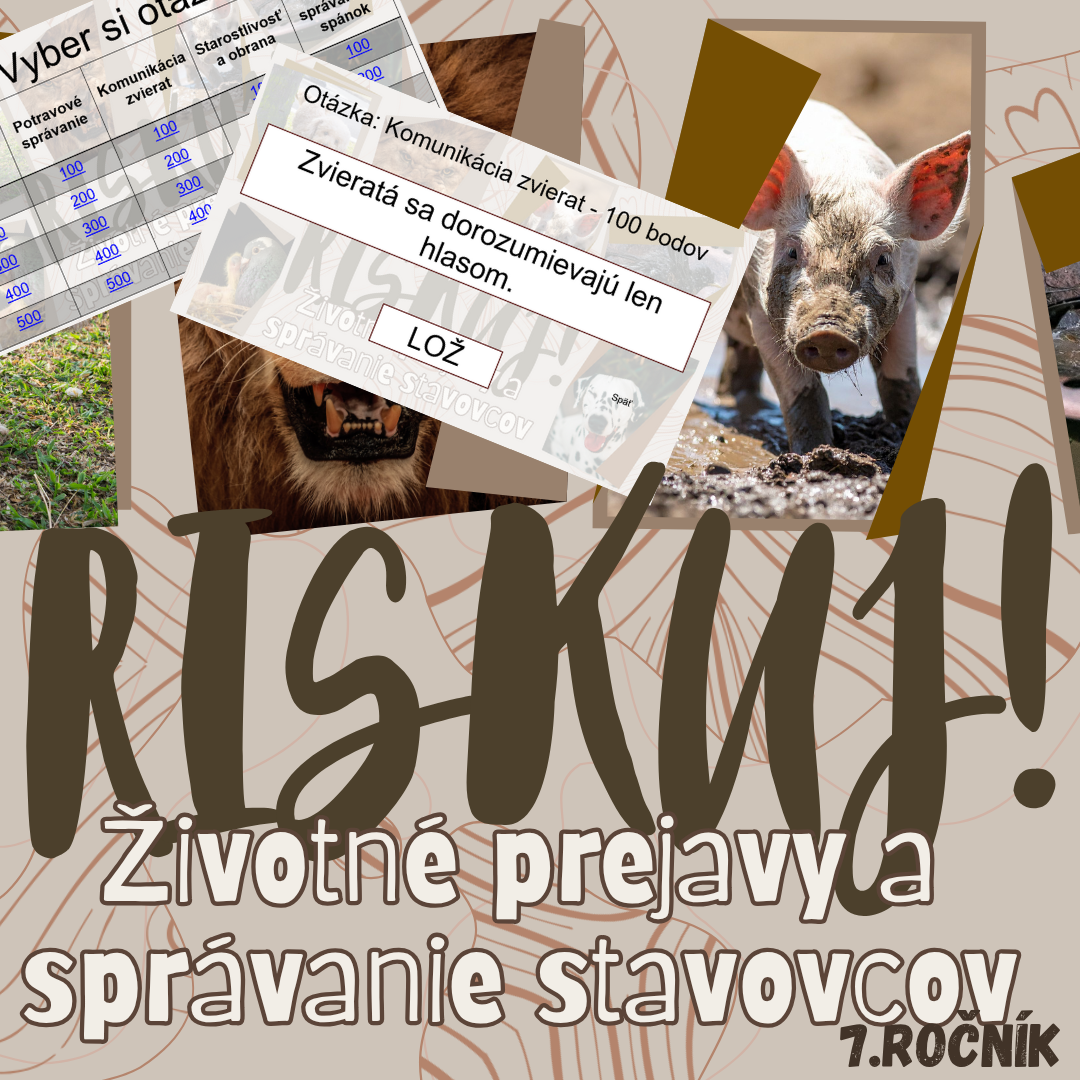 Materiál RISKUJ! – Životné prejavy a správanie stavovcov je interaktívna a zážitková hra, ktorá pomáha žiakom lepšie pochopiť správanie živočíchov, jeho typy, príčiny a význam v živote jednotlivých druhov.