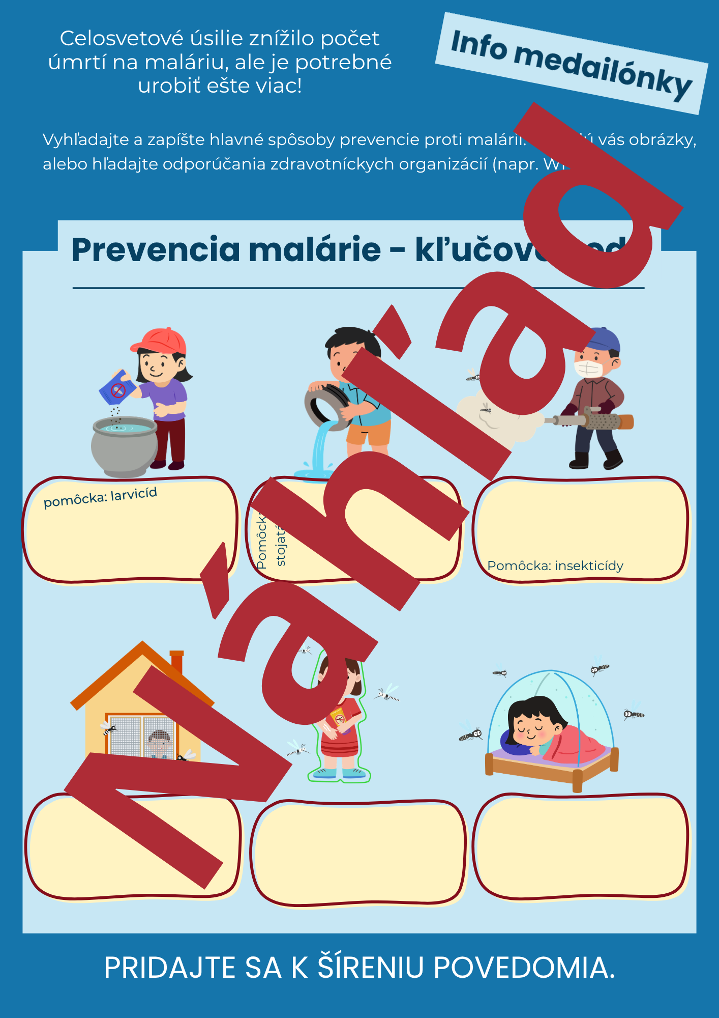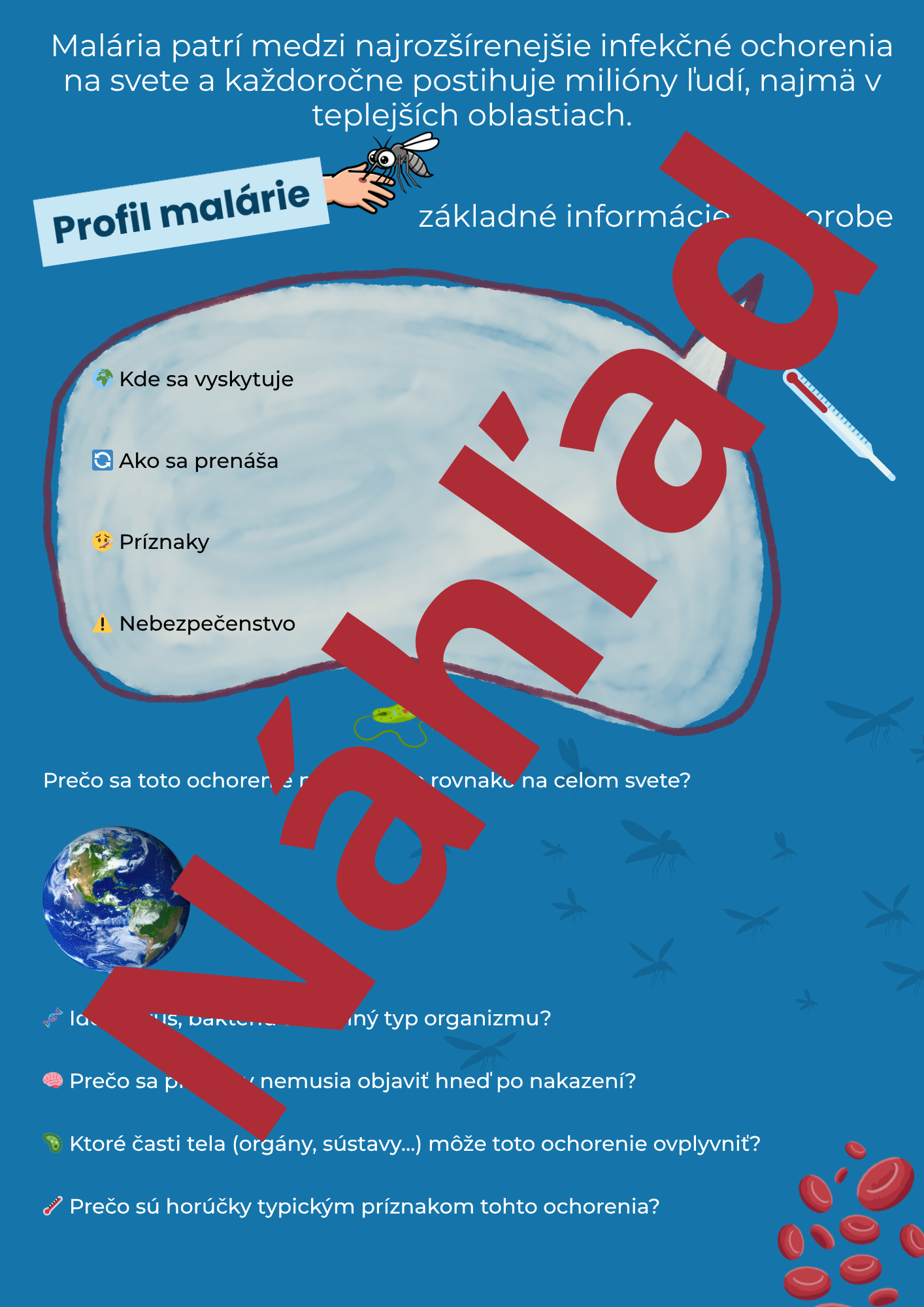 Žiaci postupne odhaľujú, čo je malária, ako sa prenáša a prečo je stále vážnym problémom vo svete. Pracujú s informáciami, vyhľadávajú, prepájajú súvislosti a aplikujú poznatky v praktických situáciách. Súčasťou materiálu sú aj úlohy zamerané na prevenciu, globálne súvislosti a kritické myslenie.