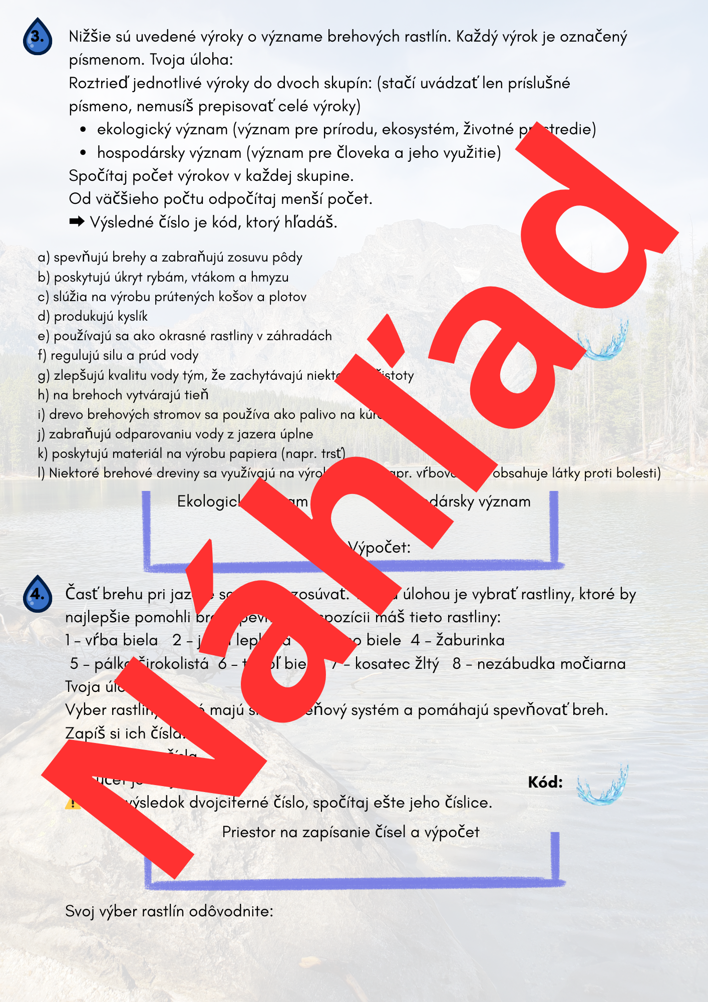 Tento originálny pracovný list kombinuje prvky únikovej hry s poznávaním brehových a vodných rastlín.