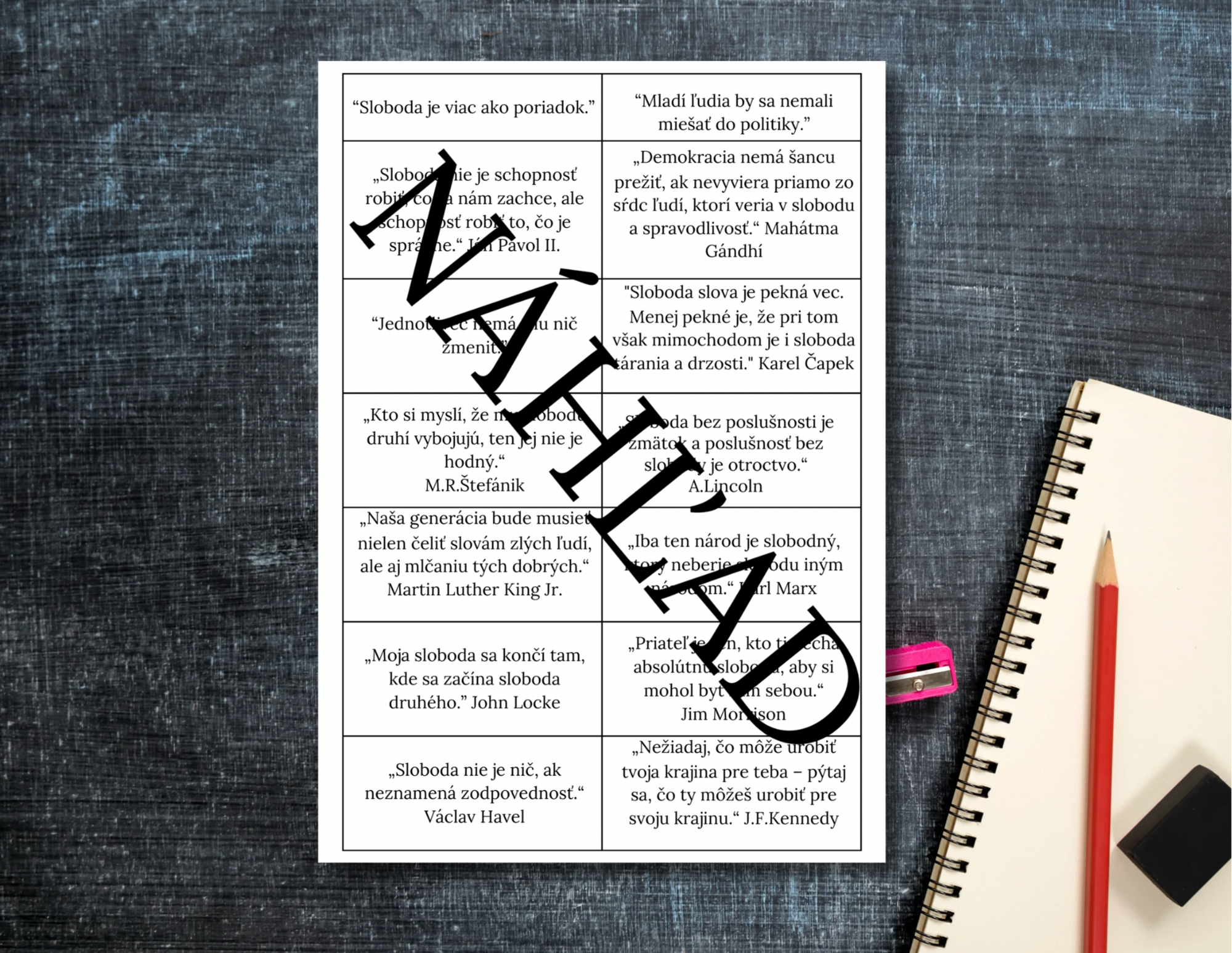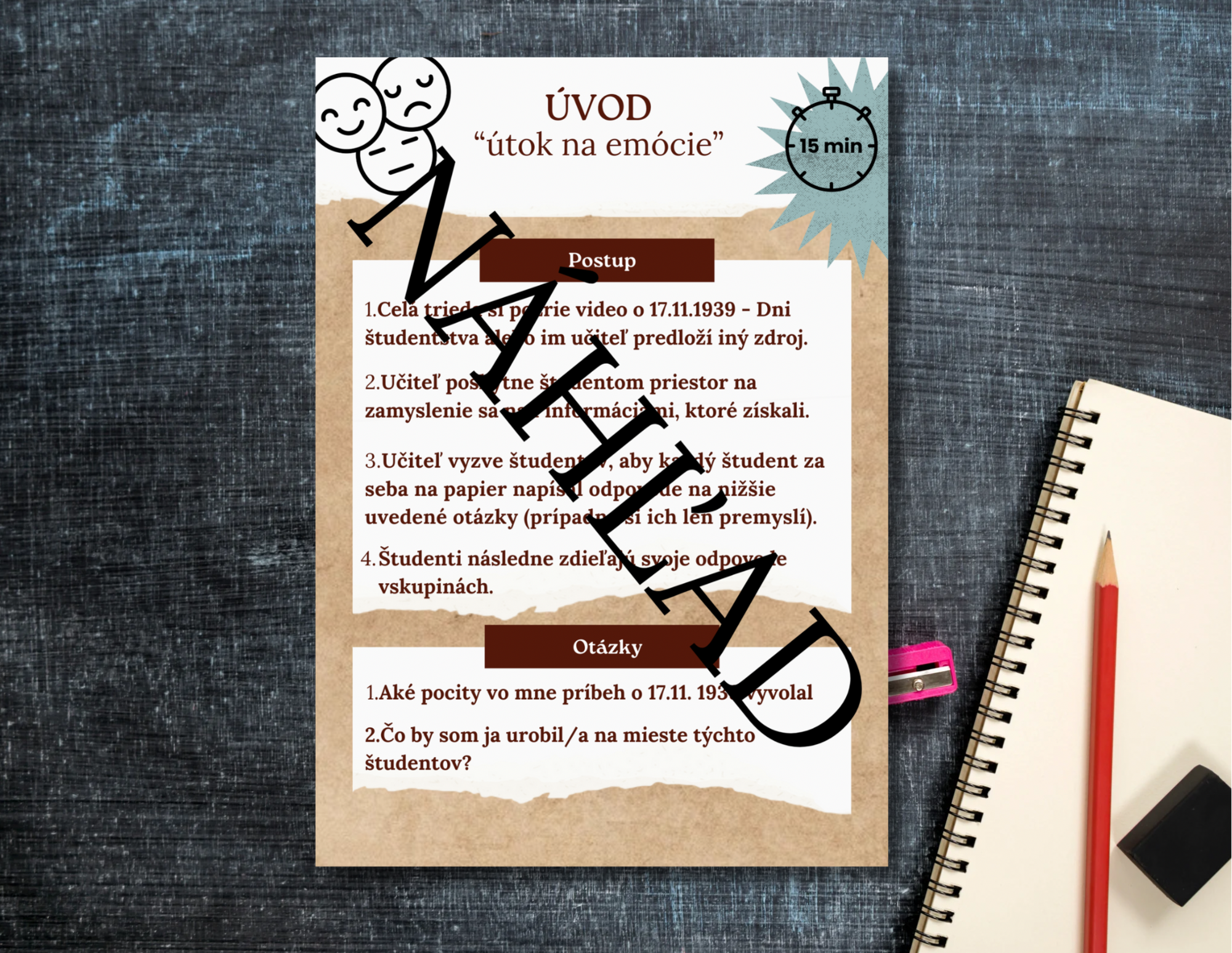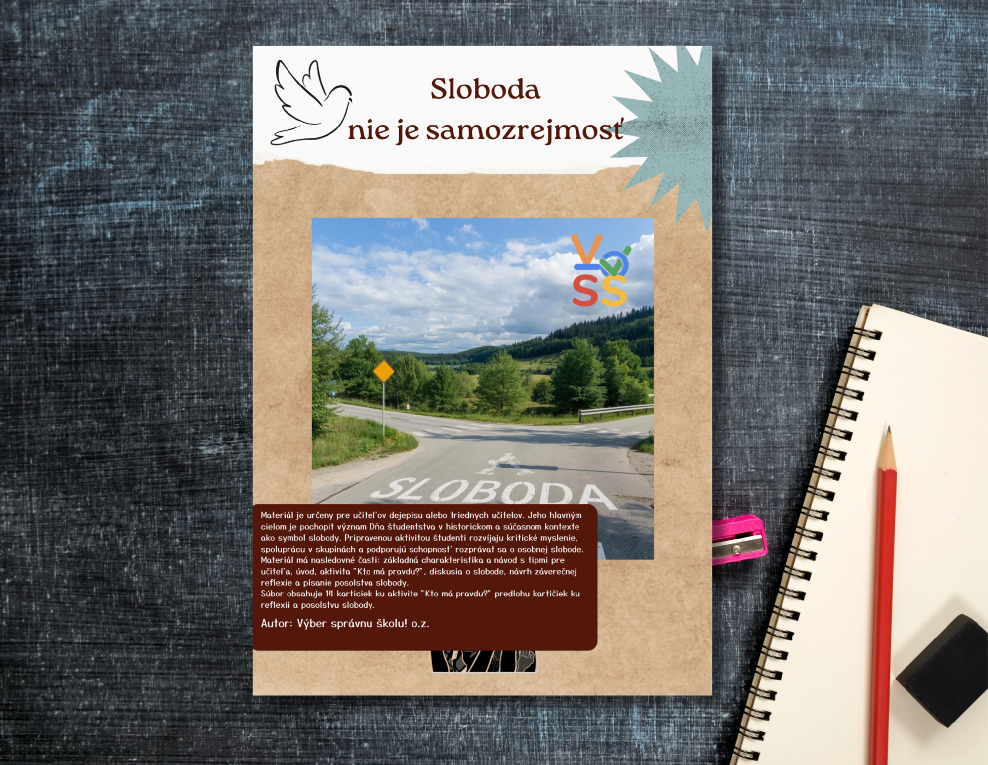 Novembrová aktivita je vhodná pre študentov stredných škôl, prípadne žiakov 9. ročníka základnej školy. Aktivita sa zameriava na udalosti z roku 1939 po pohrebe českého študenta Jana Opletala, čo podnietilo vznik pamätného Dňa študentstva - 17.11., v roku 1989 sa v rovnakom dátume odohrala Nežná revolúcia. Materiál je určený pre učiteľov dejepisu alebo triednych učiteľov. Jeho hlavným cieľom je pochopiť význam Dňa študentstva v historickom a súčasnom kontexte ako symbol slobody. Pripravenou aktivitou študenti rozvíjajú kritické myslenie, spoluprácu v skupinách a podporujú schopnosť rozprávať sa o osobnej slobode.