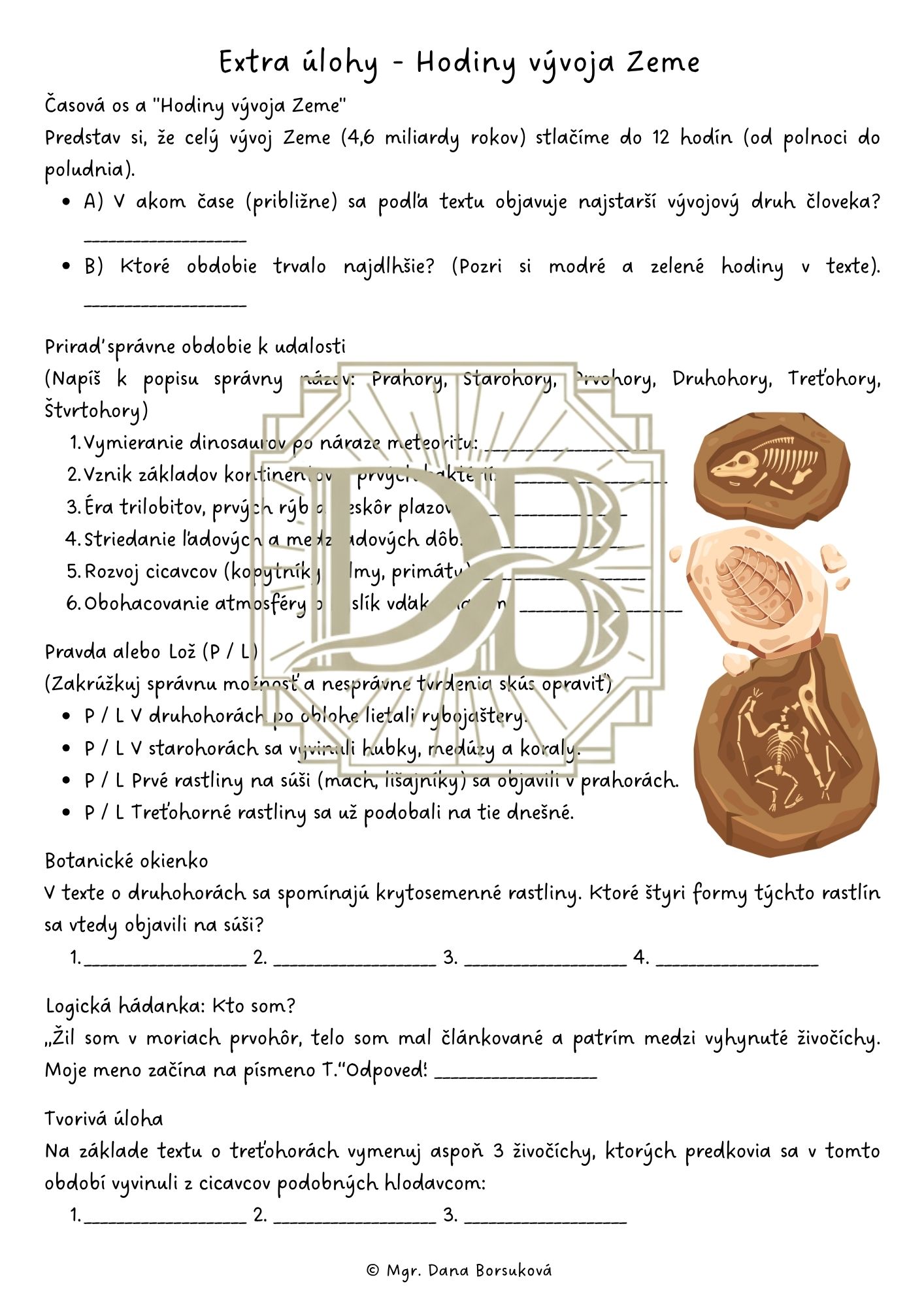 Súbor si stiahnete, jednotlivé strany vytlačíte a rozdáte žiakom. Každý pracovný list nadväzuje na učivo v učebnici + v súbore nájdete aj extra témy, ktoré sa dajú spojiť aj s biológiou.