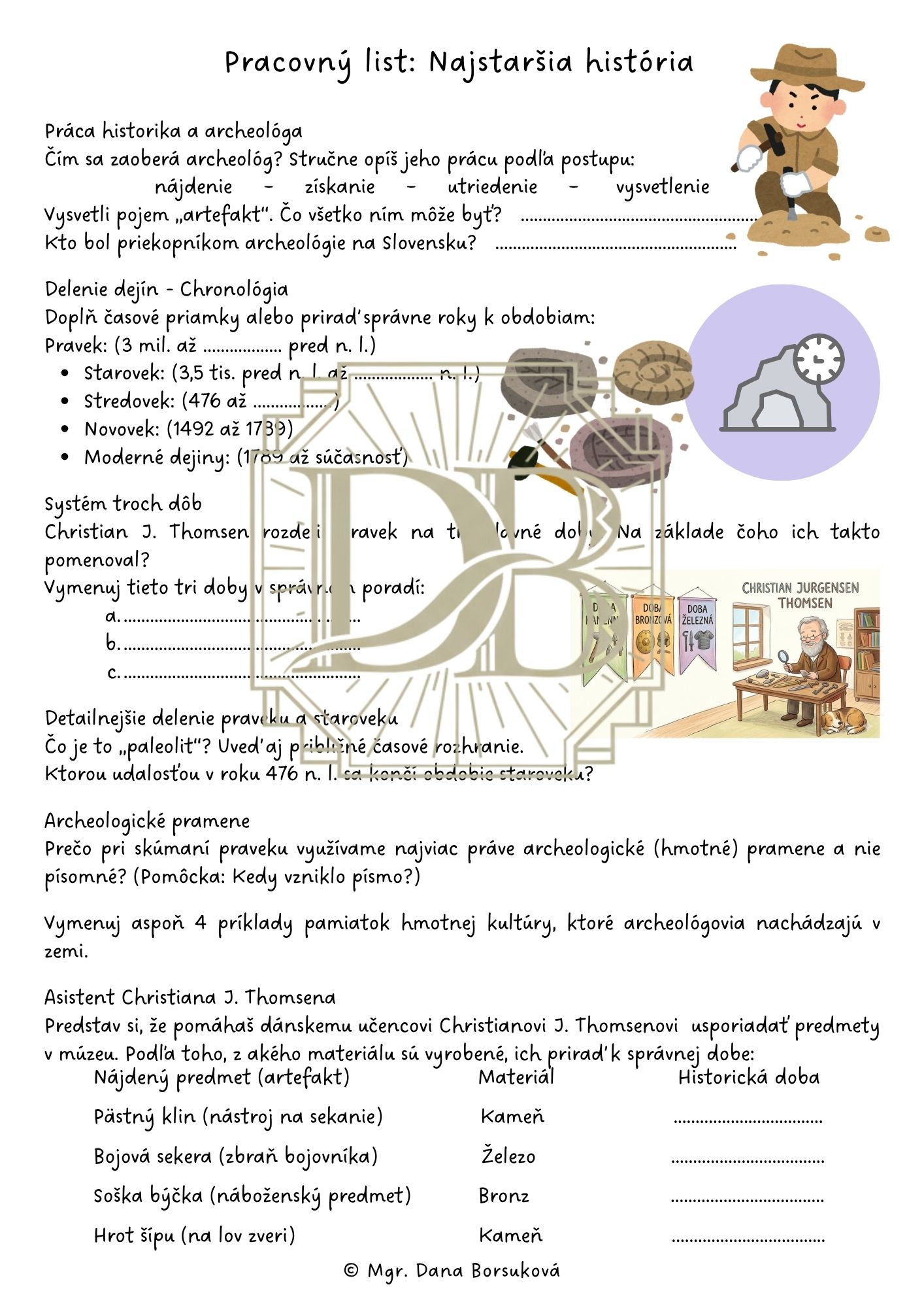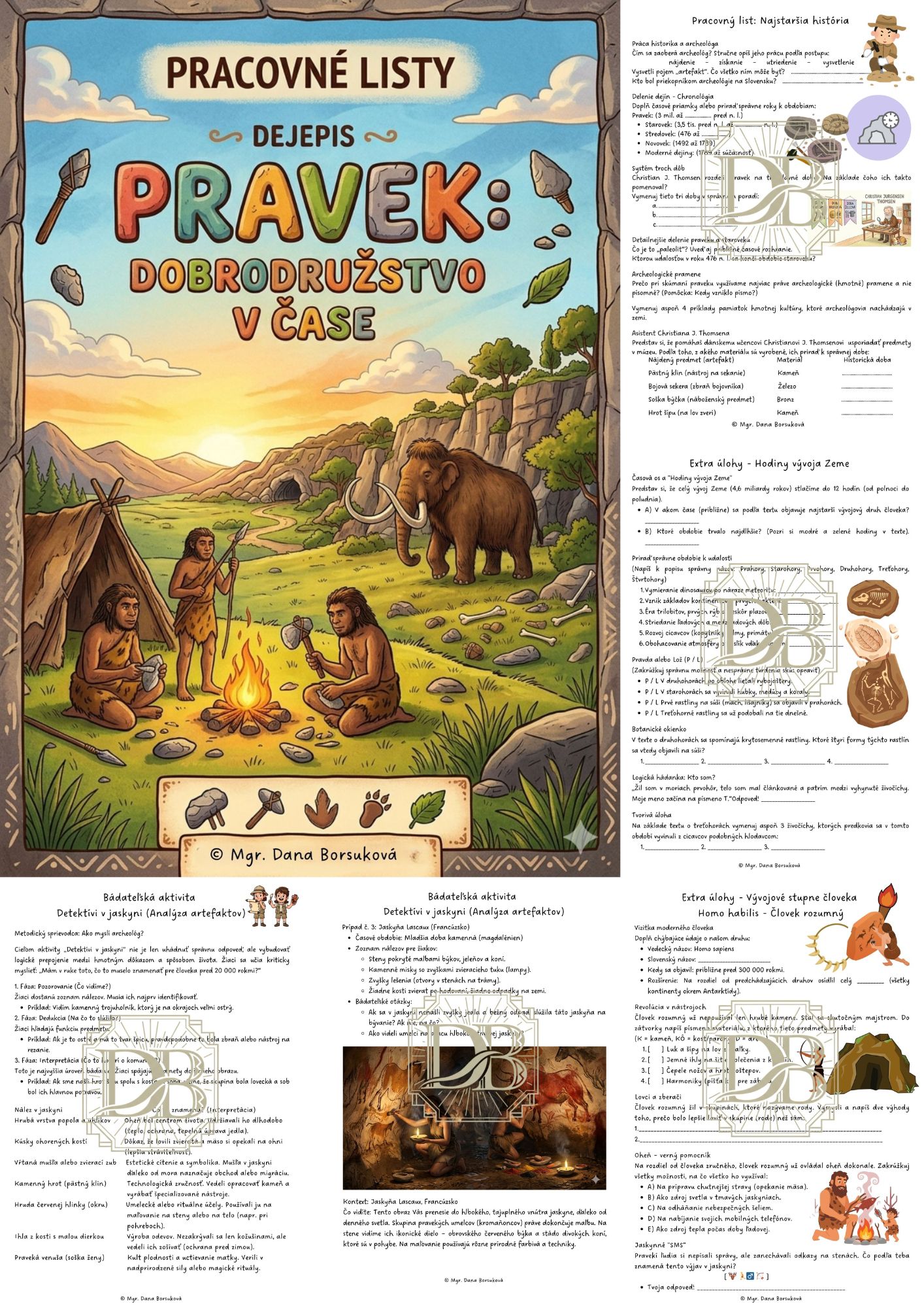 Súbor pracovných listov na tému Pravek je vytvorený na to, aby oživil Vaše hodiny dejepisu a žiakov motivoval k poznávaniu a bádaniu tejto krásnej a veľmi dôležitej etapy ľudských dejín.