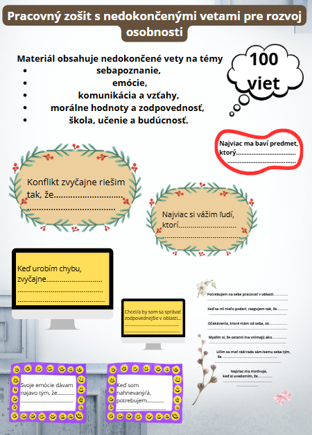 Pracovný zošit s nedokončenými vetami pre rozvoj osobnosti
