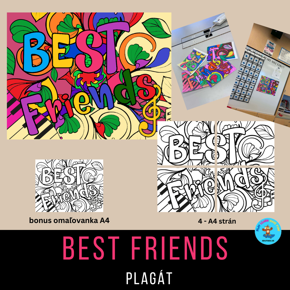Velkosť A4 venujte svojmu najlepšiemu kamarátovy či kamarátke a velkosť ktorá sa skladá zo 4XA4 patrí do rúk skupinke naj kamarátov alebo kámošiek. Príjemne chvíle pri maľovaní a veľa best friends in your life today, tomorrow and forever..........