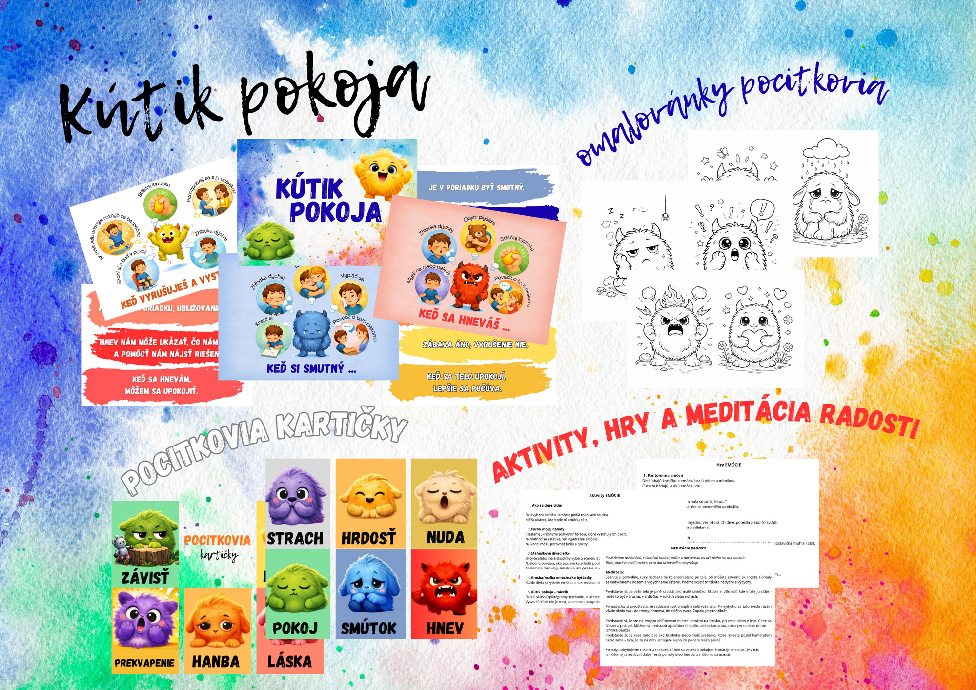 Tento balík pomôže deťom spoznávať a zvládať svoje emócie hravou a bezpečnou formou. Je vhodný do školského klubu, triedy alebo domáceho prostredia.