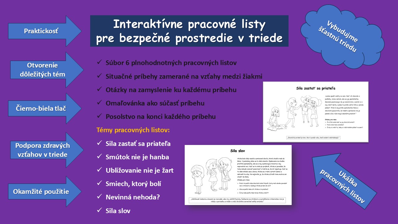 Pracovné listy sa venujú rôznym dôležitým témam, s ktorými sa všetci stretávame v našej školskej praxi. Niekedy však nie je jednoduché o nich začať rozprávať. Pracovné listy sú praktickou pomôckou, kde žiaci nájdu: