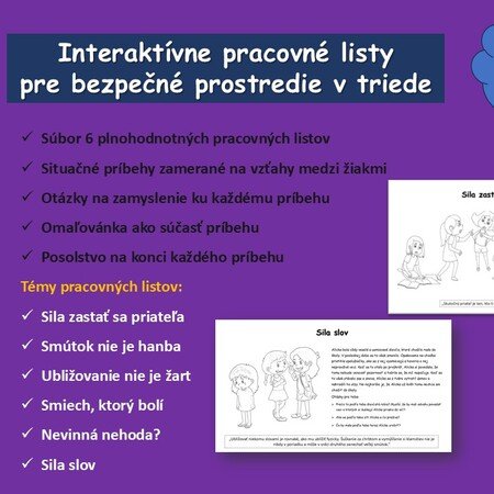 Rada by som Vám predstavila súbor 6 interaktívnych pracovných listov zameraných na vytvorenie bezpečného a zdravého prostredia v triede.