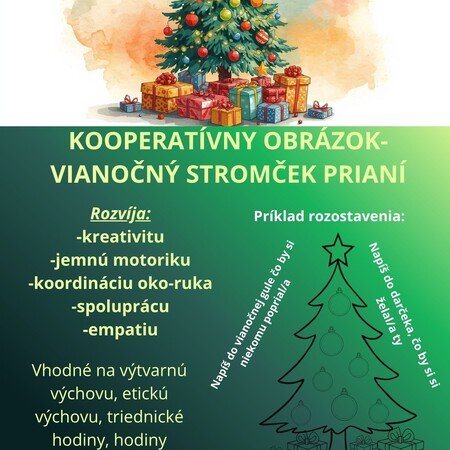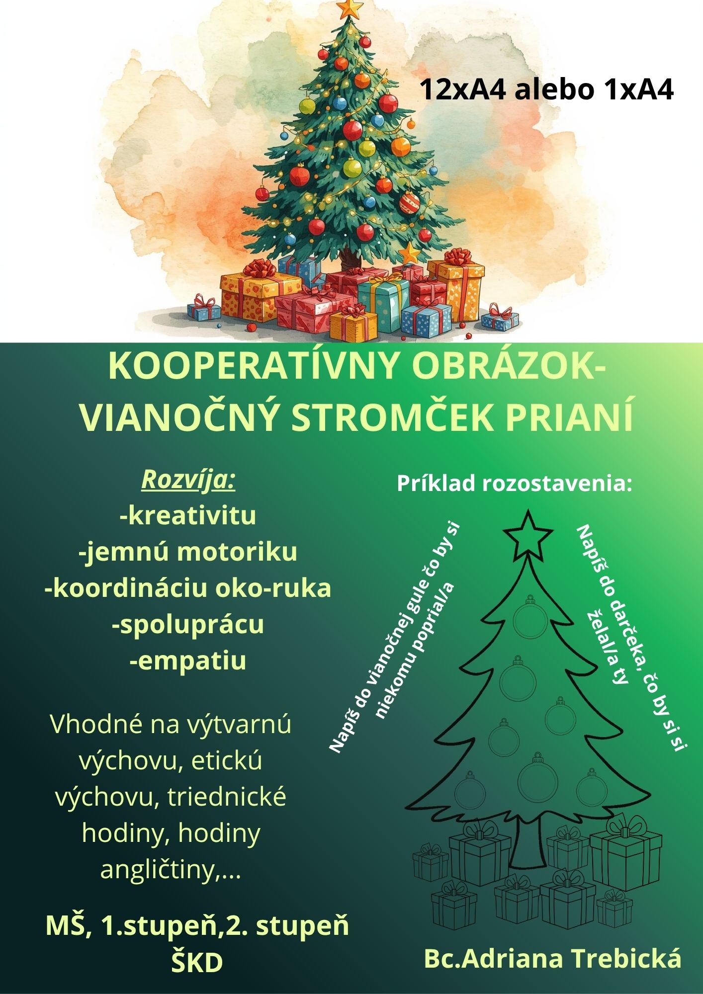 Vianoce sú časom prianí, láskavosti a spolupatričnosti. Tento kooperatívny obrázok vianočného stromčeka prináša do triedy alebo škôlky čaro spoločnej tvorby a kúsok vianočného dobra