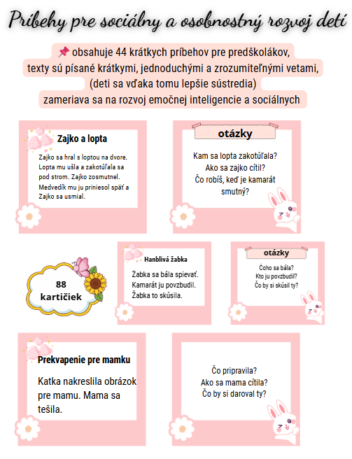 Materiál obsahuje 44 krátkych príbehov pre predškolákov, zameraných na rozvoj: