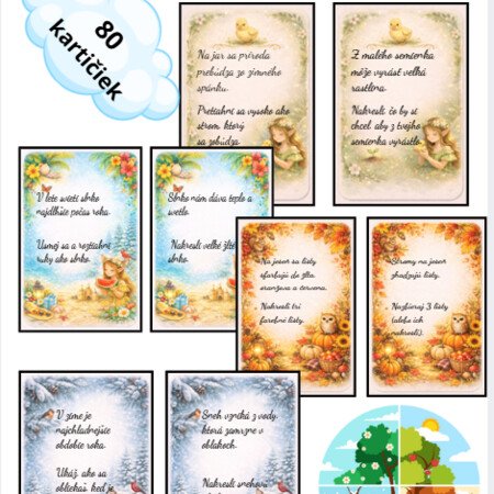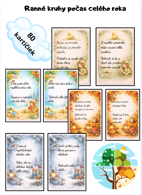Tento balík aktivít o ročných obdobiach vám ponúka pohyb, tvorenie, rozhovor aj krátke príbehy – všetko pripravené na okamžité použitie.