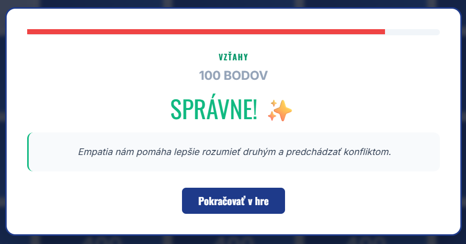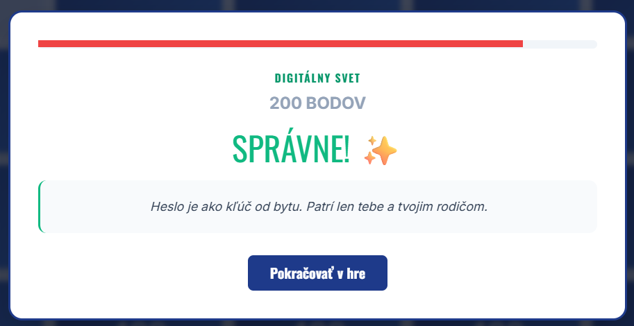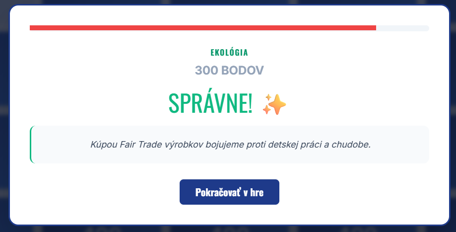- Technická poznámka: Aplikácia bola úspešne testovaná v prehliadači Google Chrome, kde funguje plynule vrátane všetkých zvukových efektov a animácií. Skvele vynikne na interaktívnej tabuli, ale je plne hrateľná aj na tabletoch či v počítačovej učebni.