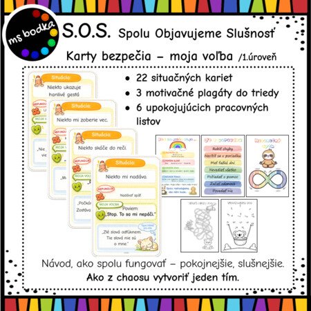 - 22 situačných kariet vytvorených v spolupráci pedopsychológa, špeciálneho pedagóga a pedagóga 1. cyklu ZŠ