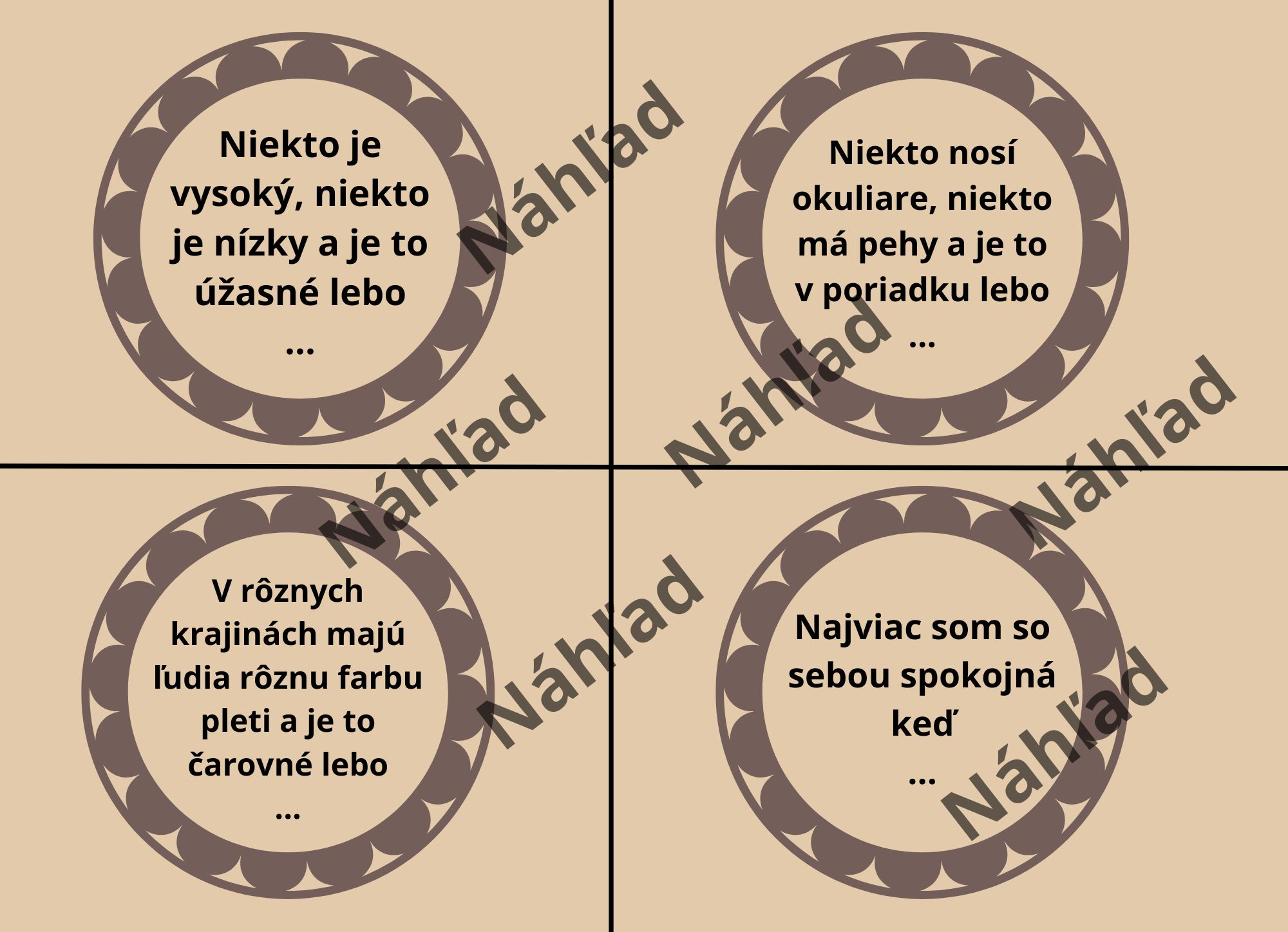 Práve na to, sú tú tieto kartičky, ktoré slúžia na hlbšie zamyslenie sa a na pochopenie, že každý človek je jedinečný a má svoju nevyčísliteľnú hodnotu :)