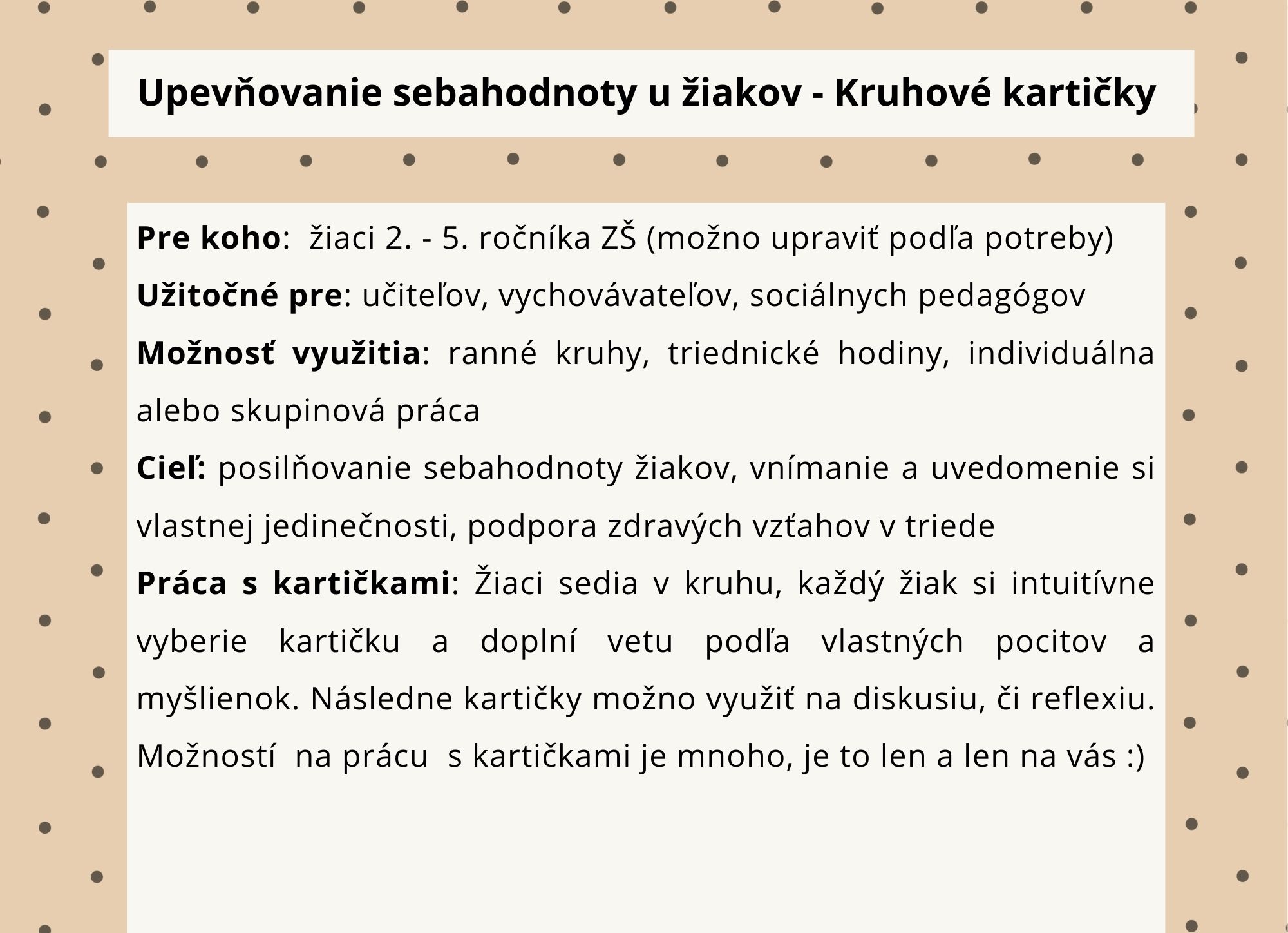 Využitie kartičiek je široké, či už ide o ranné kruhy, triednické hodiny, alebo aj hocijakom predmete, kedy máte pocit, že v triede nevládne najlepšia atmosféra.