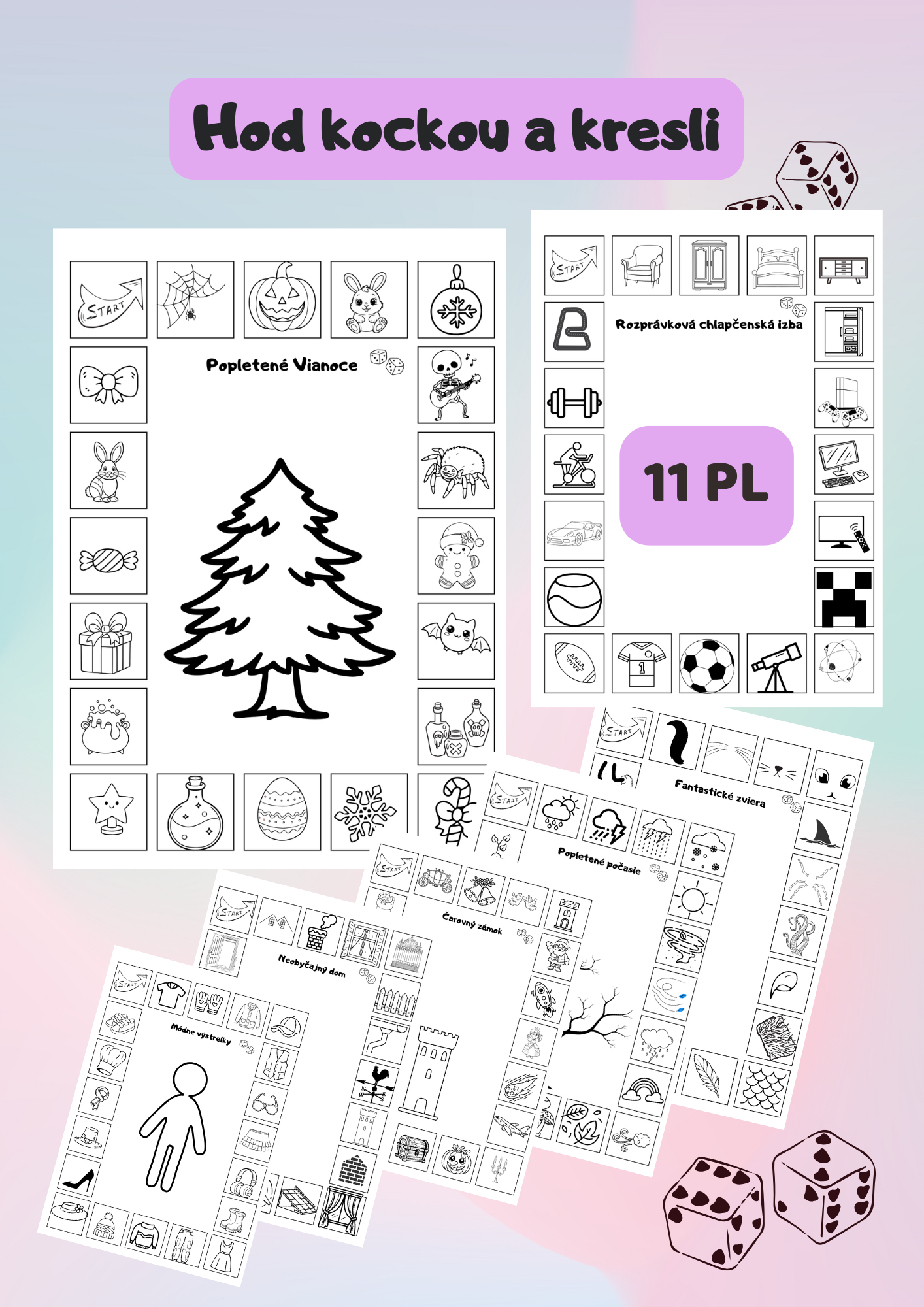 Sada 11 originálnych pracovných listov, ktoré žiakov vtiahnu do tvorivej hry. Úloha je jednoduchá – hodia kockou a podľa plániku kreslia obrázok.