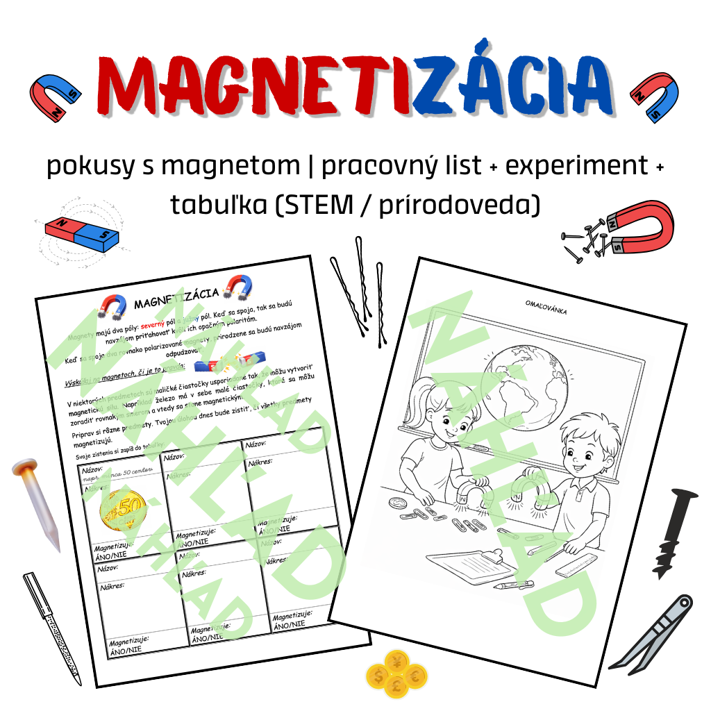 Tento materiál pomáha deťom pochopiť základné princípy magnetizmu – čo sú póly magnetu, prečo sa magnety priťahujú alebo odpudzujú a ktoré predmety magnet priťahuje.