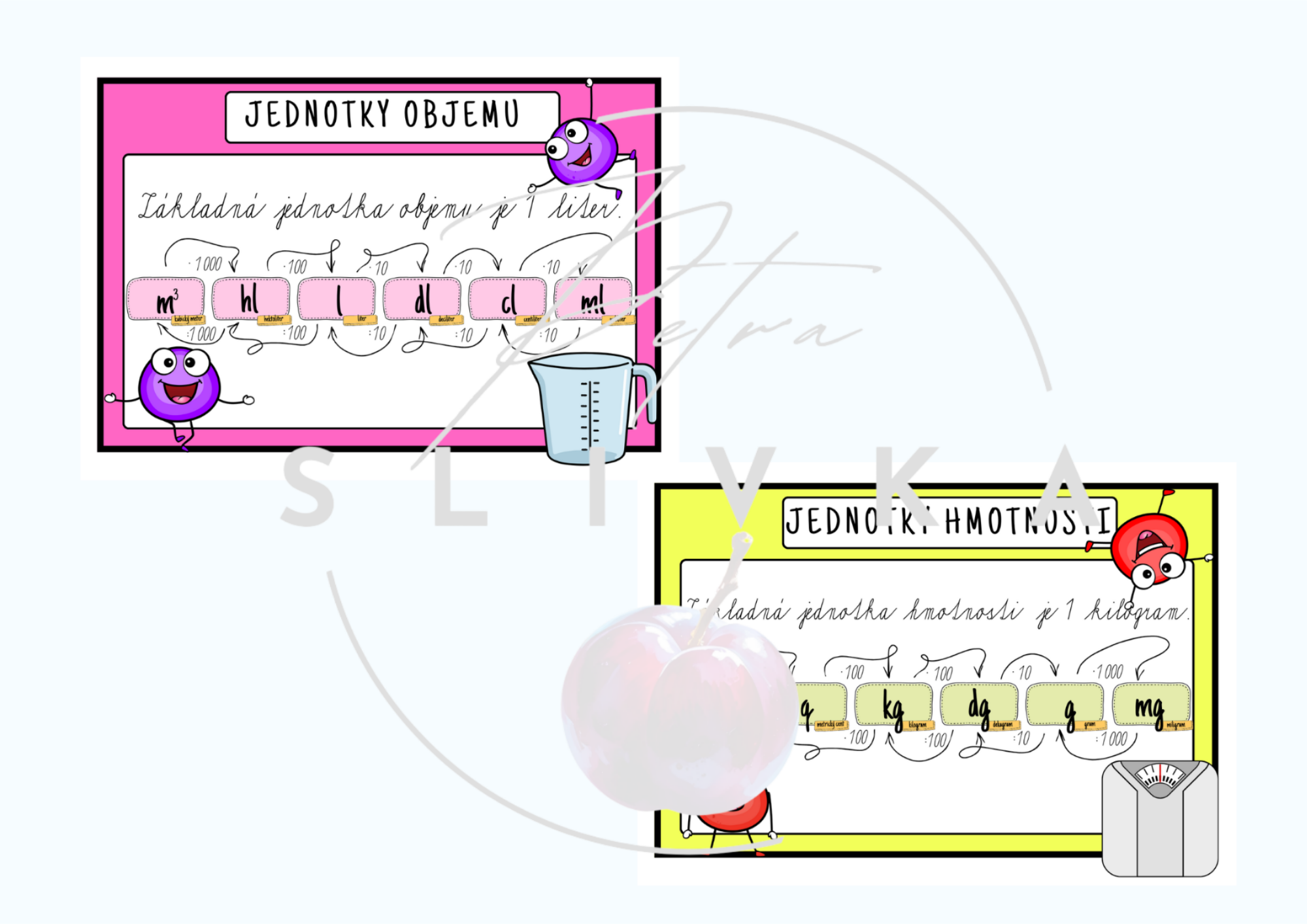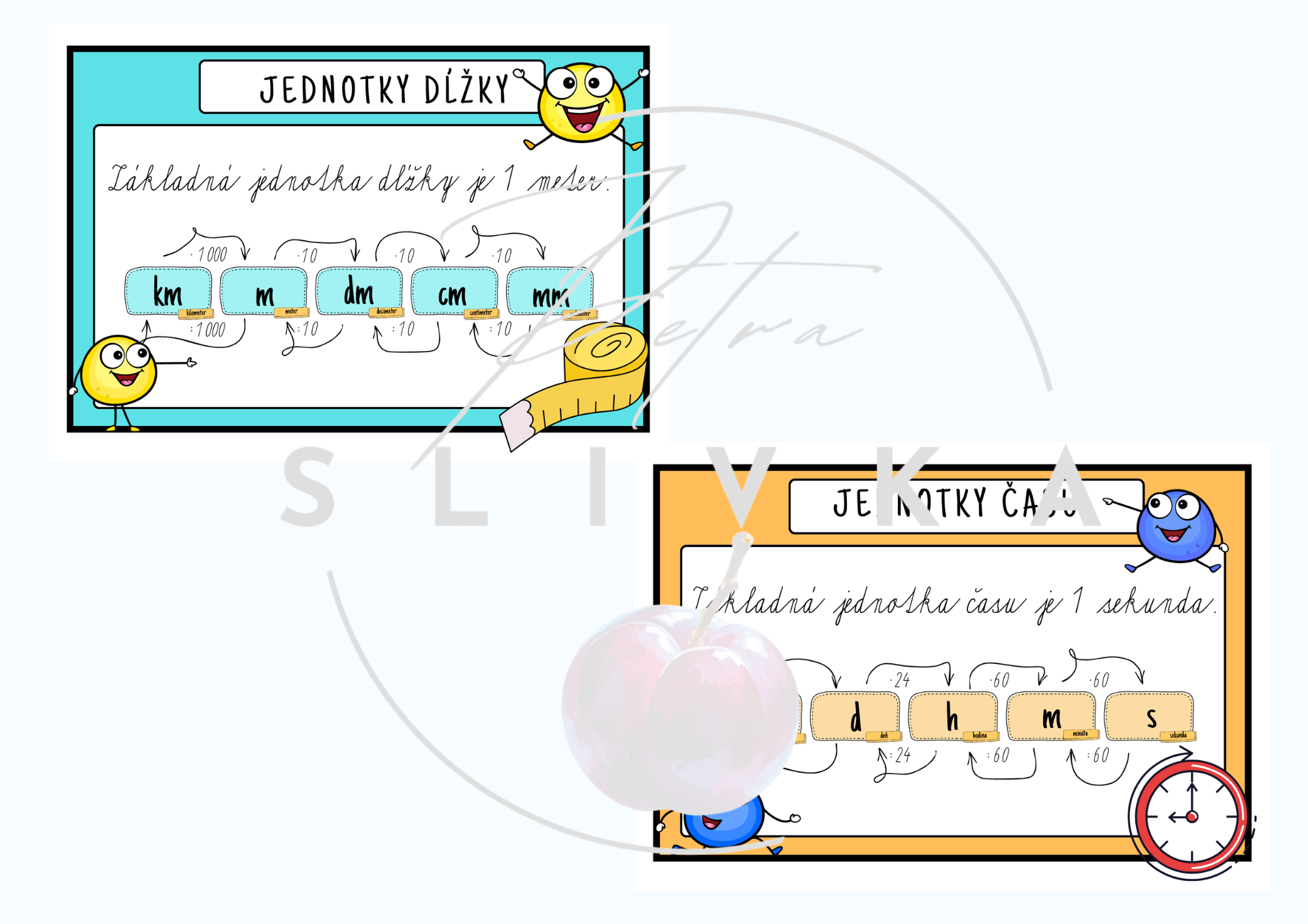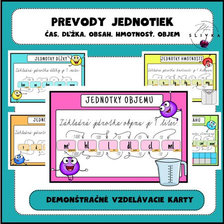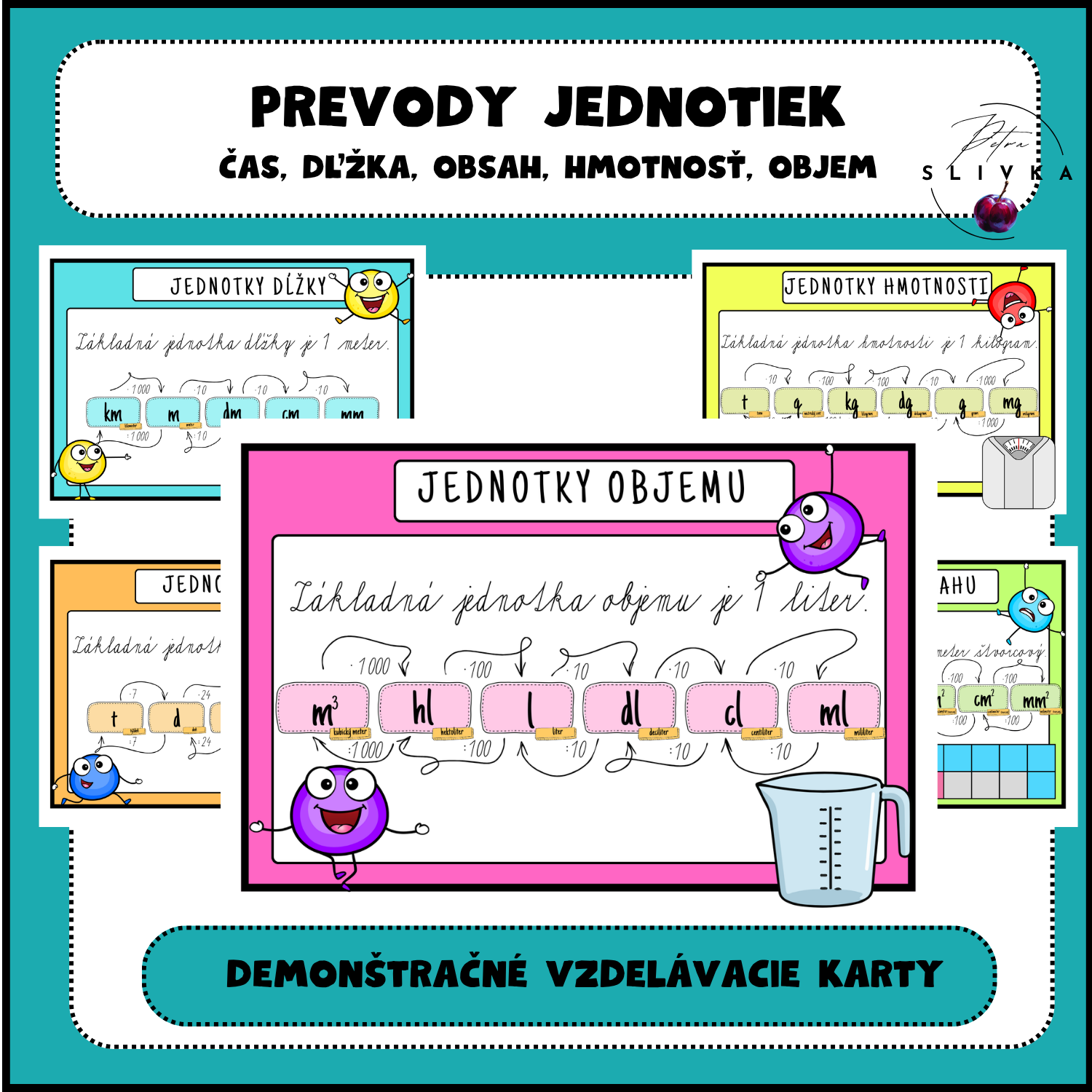 Prevody jednotiek dľžky, hmotnosti, obsahu, času, objemu.