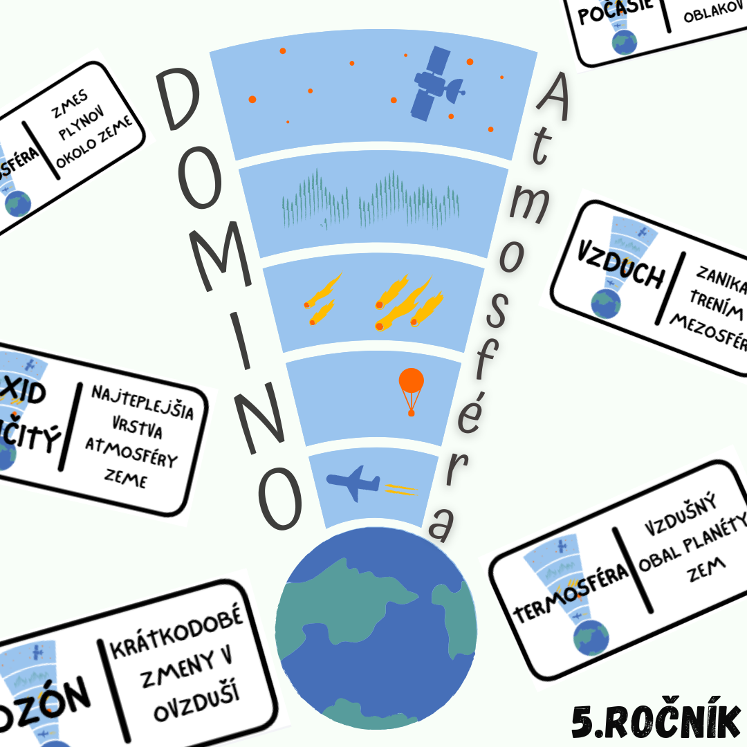 Materiál „Domino – Atmosféra“ je didaktická a hravá edukačná aktivita určená pre žiakov 5. ročníka základnej školy na hodiny geografie. Prostredníctvom práce s domino kartičkami si žiaci upevňujú poznatky o atmosfére ako plynnom obale Zeme, jej zložení, vrstvách a význame pre život na našej planéte.