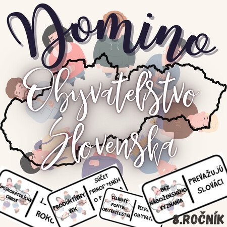 Materiál „Domino – Obyvateľstvo Slovenska“ je interaktívna edukačná hra určená pre žiakov 8. ročníka, ktorá hravou formou prepája demografické pojmy a poznatky o obyvateľstve našej krajiny.