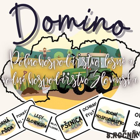 Materiál „Domino – Poľnohospodárstvo, lesné a vodné hospodárstvo Slovenska“ je didaktická a prakticky zameraná edukačná aktivita určená pre žiakov 8. ročníka základnej školy na hodiny geografie. Prostredníctvom práce s domino kartičkami si žiaci upevňujú poznatky o hospodárskom využívaní prírodných zdrojov Slovenska, o poľnohospodárstve, lesnom hospodárstve a vodnom hospodárstve a ich význame pre spoločnosť a krajinu.