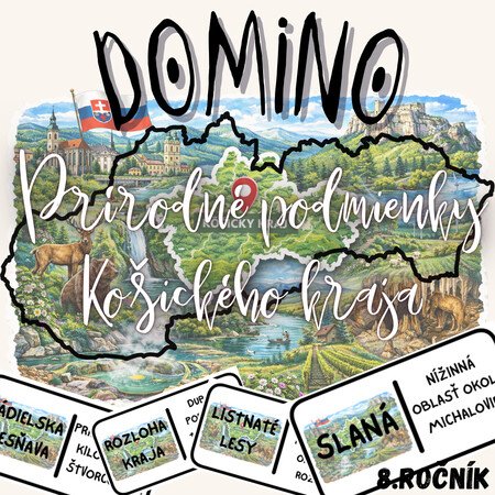 Prostredníctvom práce s 25 domino kartičkami si žiaci precvičujú priraďovanie prírodných prvkov (napr. Slovenské rudohorie, Slovenský kras, Volovské vrchy, rieka Hornád, rieka Bodrog) k ich charakteristikám. Aktivita podporuje orientáciu na mape, logické myslenie a schopnosť prepájať prírodné podmienky s využitím krajiny a rozvojom regiónu.