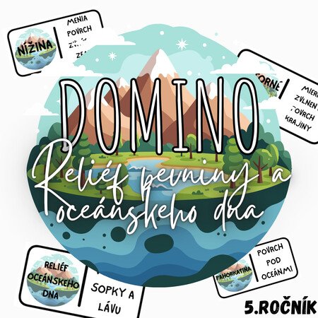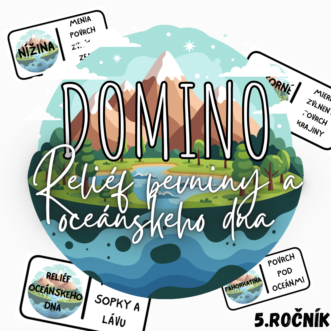 Materiál „Domino – Reliéf pevniny a oceánskeho dna“ je didaktická a hravá edukačná aktivita určená pre žiakov 5. ročníka základnej školy na hodiny geografie. Prostredníctvom práce s domino kartičkami si žiaci upevňujú poznatky o základných tvaroch reliéfu pevniny a oceánskeho dna a učia sa ich rozlišovať podľa charakteristických znakov.