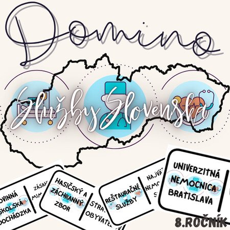 Materiál „Domino – Služby Slovenska“ je didaktická a prakticky zameraná edukačná aktivita určená pre žiakov 8. ročníka základnej školy na hodiny geografie. Prostredníctvom práce s domino kartičkami si žiaci upevňujú poznatky o službách na Slovensku, ich druhoch, význame a úlohe v hospodárstve štátu a v každodennom živote obyvateľstva.
