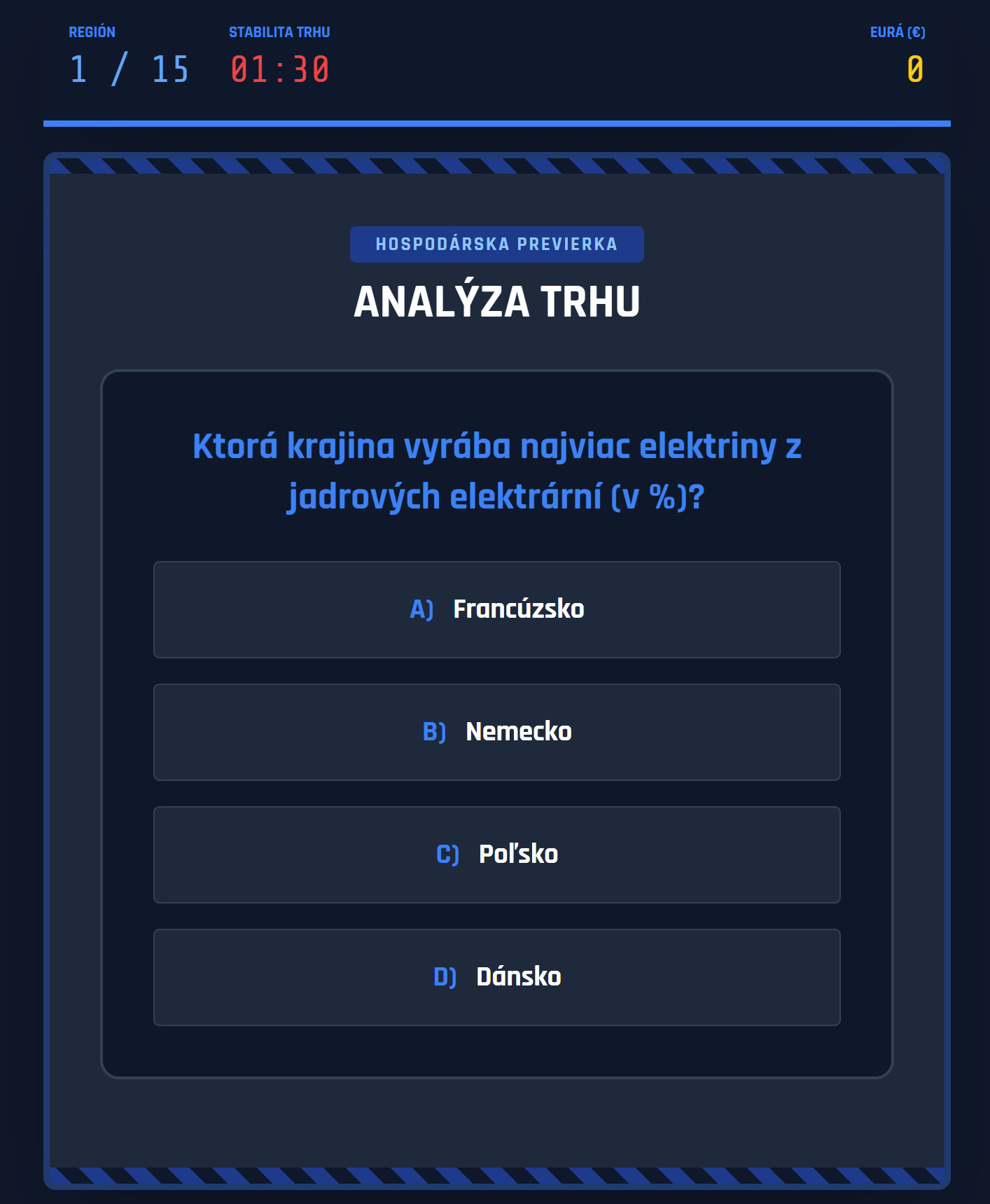 Premeňte hodinu geografie na budovanie ekonomického impéria! Táto digitálna hra kombinuje hlboké znalosti o európskom hospodárstve s napínavou logickou výzvou.