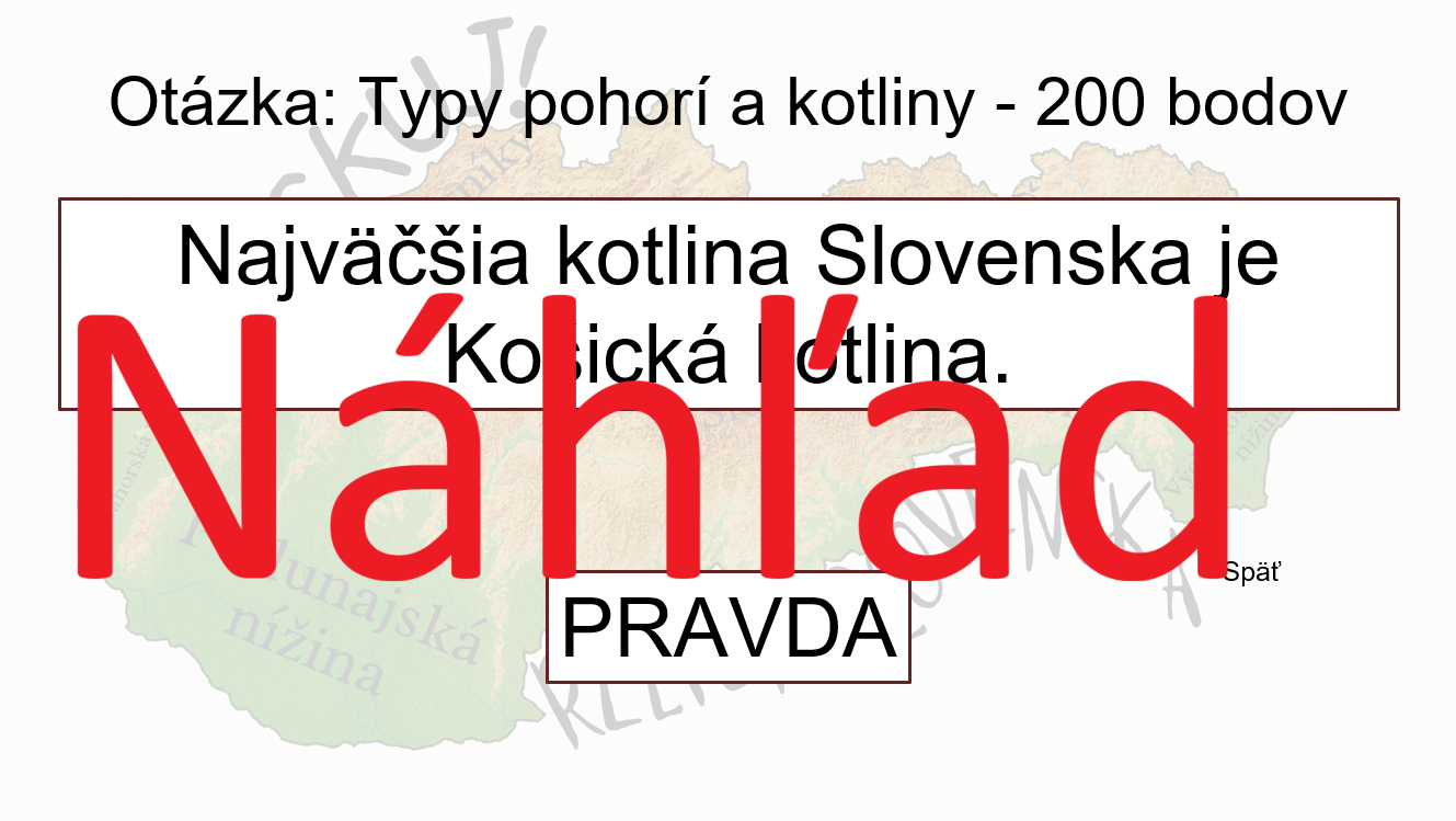 Aktivita je vhodná ako opakovanie pred testom, ako motivačná aktivita na začiatku tém alebo ako zážitkové zhrnutie na konci tematického celku o reliéfe Slovenska.