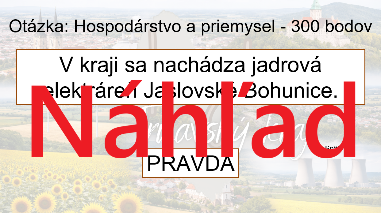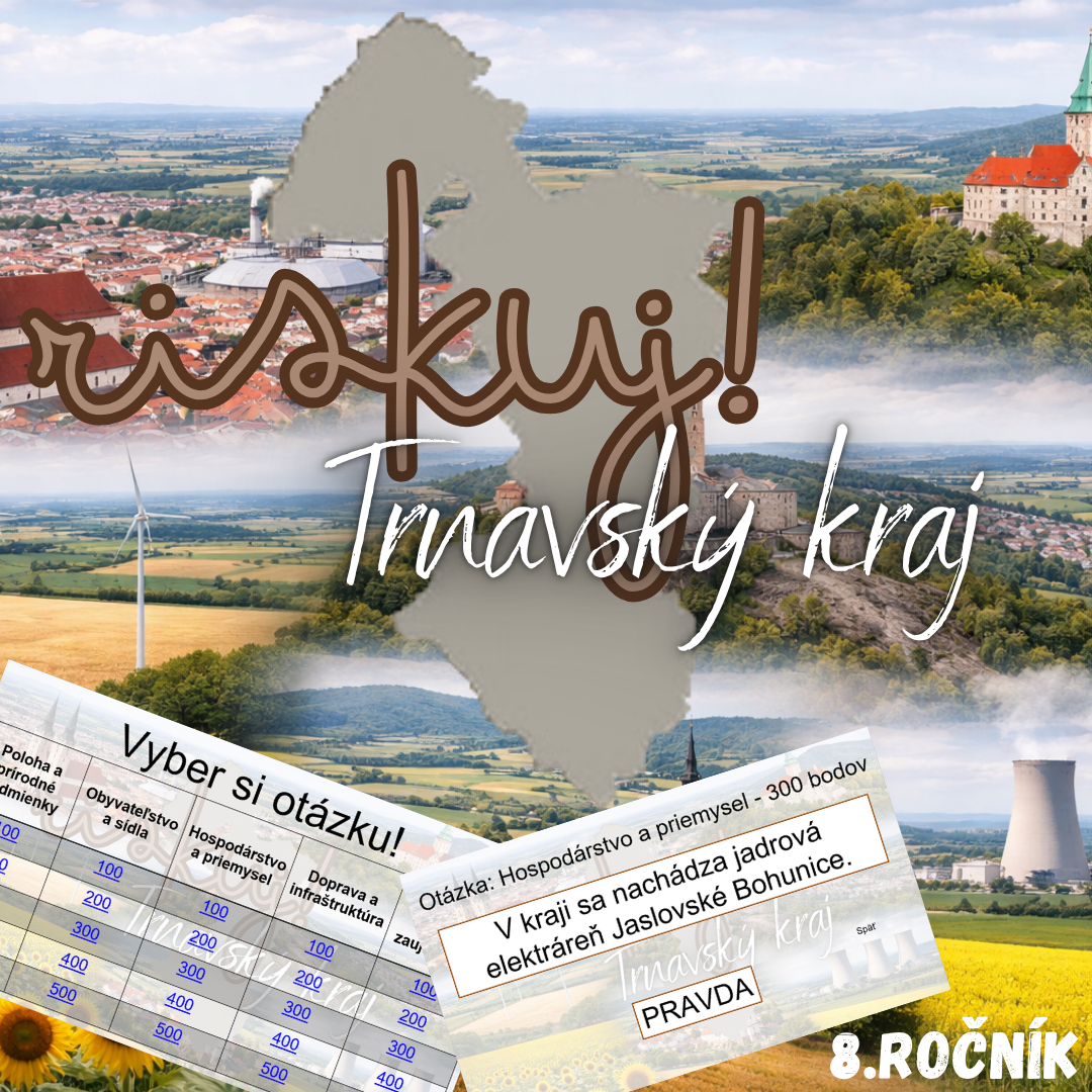 Materiál „RISKUJ! – Trnavský kraj“ je interaktívna a súťažná edukačná hra určená pre žiakov 8. ročníka základnej školy na hodiny geografie. Tematicky je zameraná na komplexné poznanie Trnavského kraja z hľadiska polohy, prírodných podmienok, obyvateľstva, hospodárstva, dopravy a cestovného ruchu.