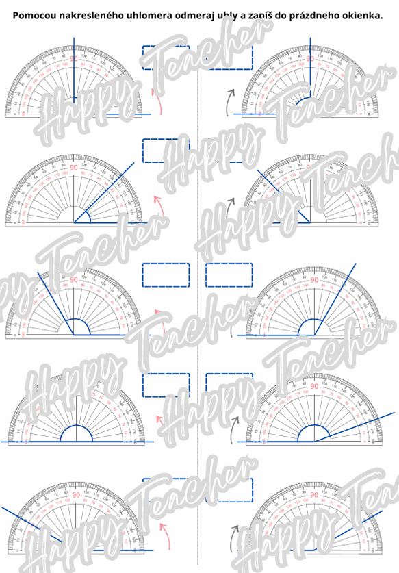 ✔ uhly v rôznych polohách merané pomocou nakresleného uhlomera